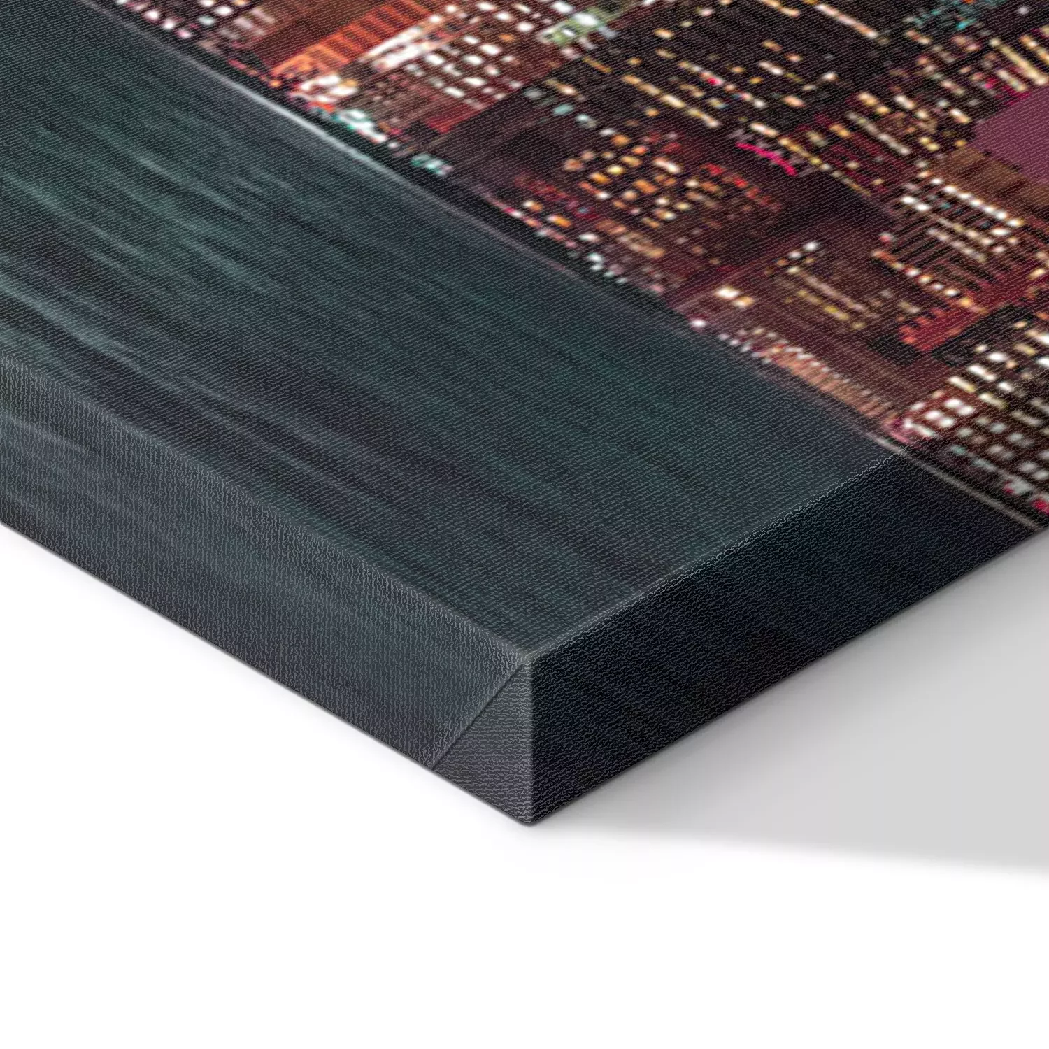 De print wordt aangebracht op hoogwaardig canvas dat op een schildersweefgetouw (spieraam) wordt gespannen. Omdat de print de zijranden bedekt, hoeft het ontwerp niet met een extra kader te worden omlijst. Wij raden ook composities aan die uit meerdere foto's bestaan en zo een coherente compositie vormen.