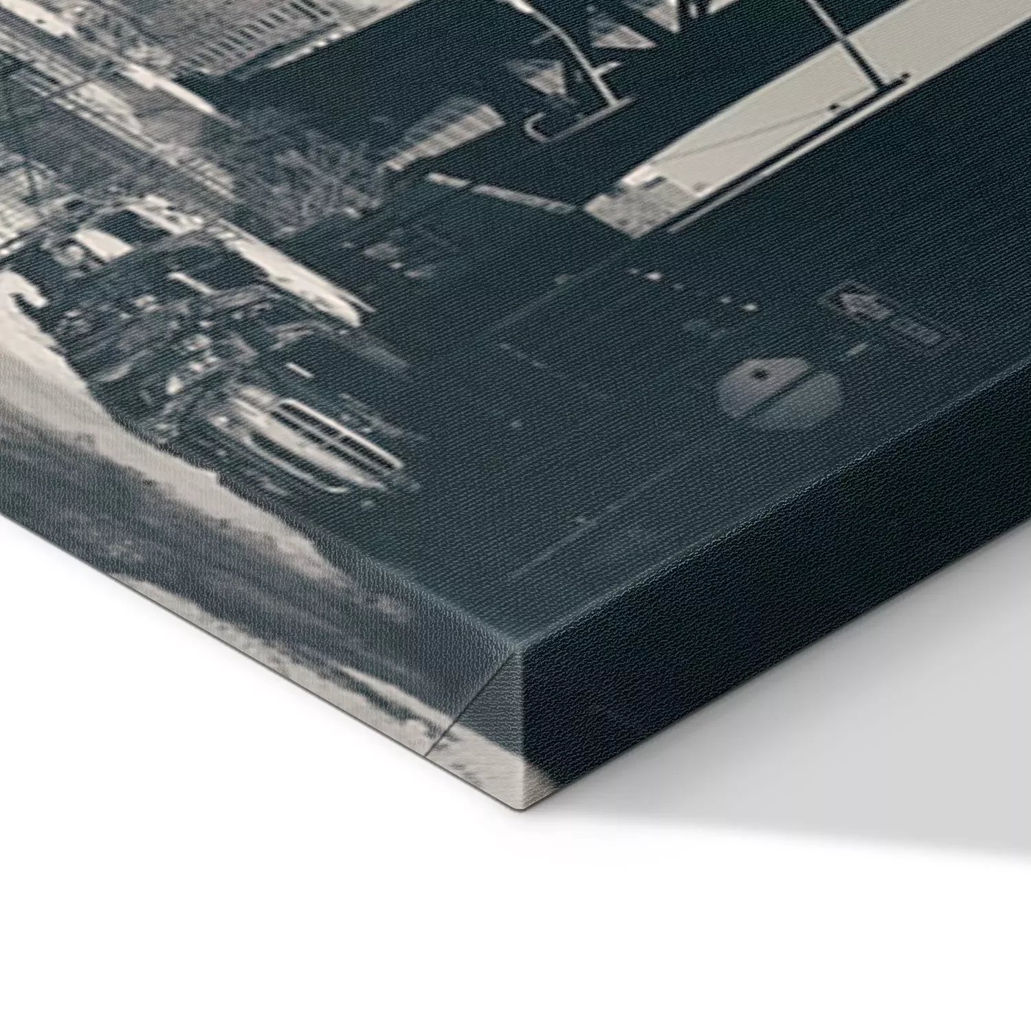 De print wordt aangebracht op hoogwaardig canvas dat op een schildersweefgetouw (spieraam) wordt gespannen. Omdat de print de zijranden bedekt, hoeft het ontwerp niet met een extra kader te worden omlijst. Wij raden ook composities aan die uit meerdere foto's bestaan en zo een coherente compositie vormen.