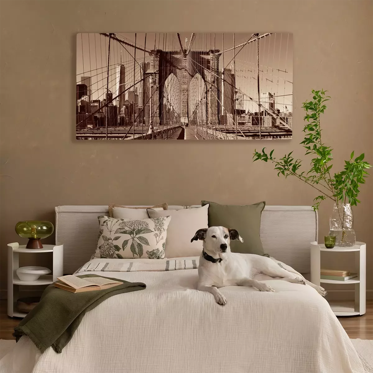De print wordt aangebracht op hoogwaardig canvas dat op een schildersweefgetouw (spieraam) wordt gespannen. Omdat de print de zijranden bedekt, hoeft het ontwerp niet met een extra kader te worden omlijst. Wij raden ook composities aan die uit meerdere foto's bestaan en zo een coherente compositie vormen.