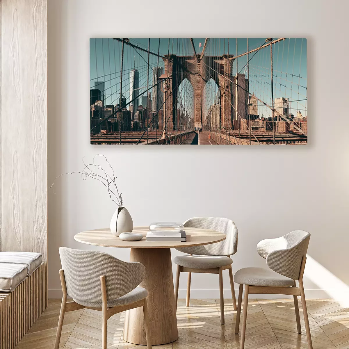 New York City skyline van Manhattan Brooklyn Bridge panorama