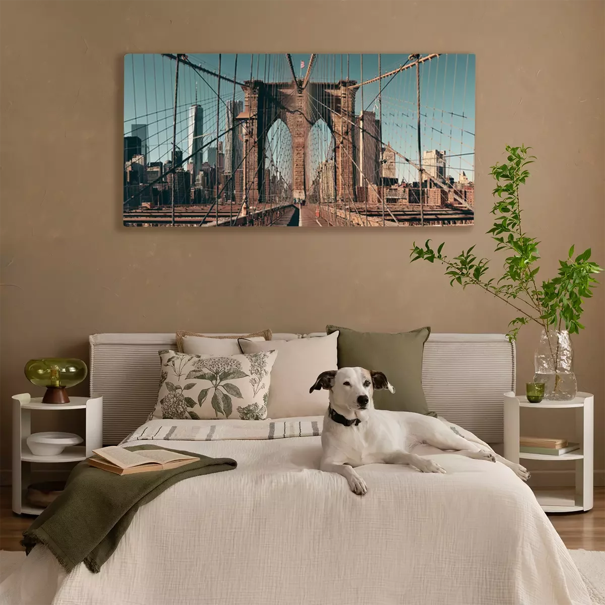 De print wordt aangebracht op hoogwaardig canvas dat op een schildersweefgetouw (spieraam) wordt gespannen. Omdat de print de zijranden bedekt, hoeft het ontwerp niet met een extra kader te worden omlijst. Wij raden ook composities aan die uit meerdere foto's bestaan en zo een coherente compositie vormen.