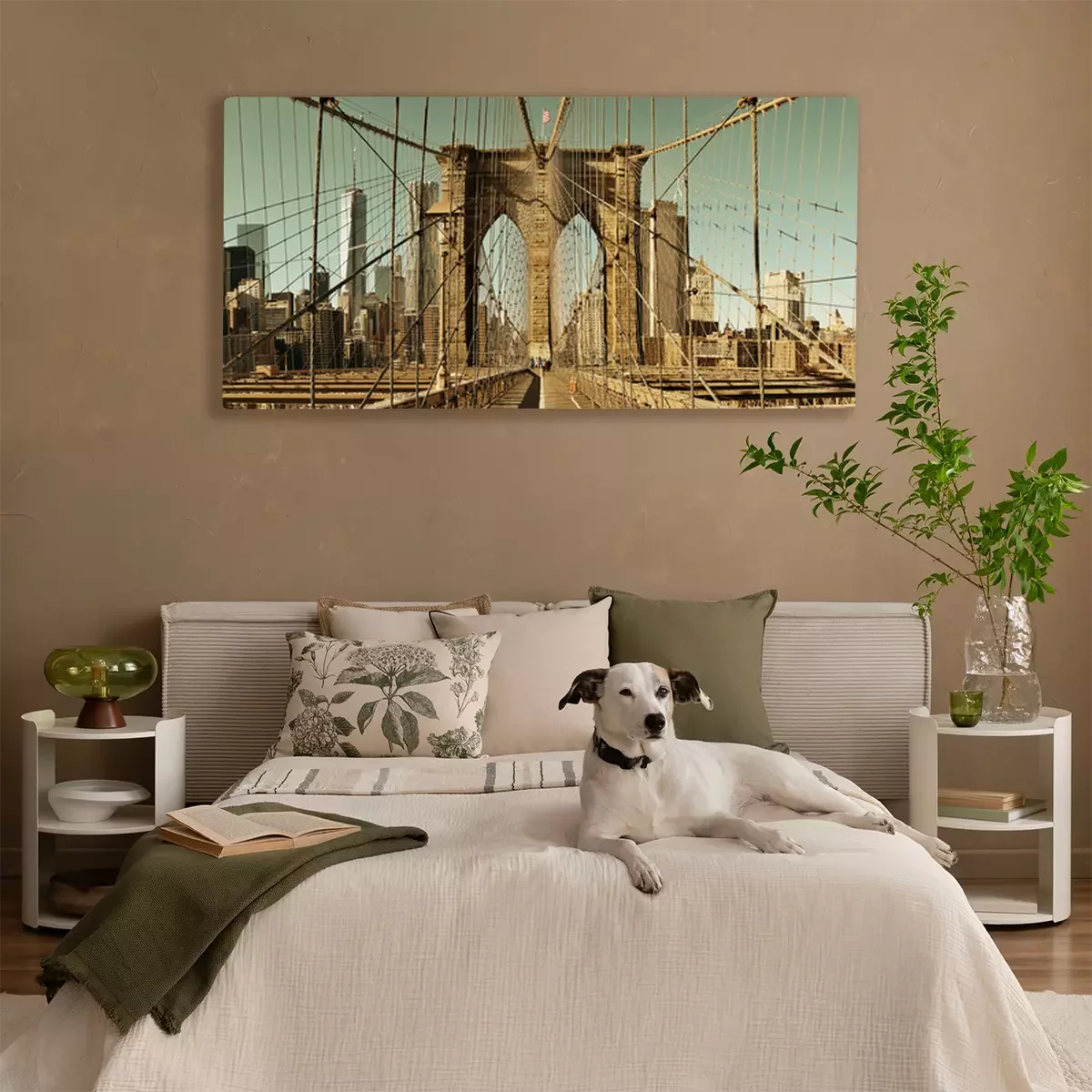 New York City skyline van Manhattan Brooklyn Bridge panorama