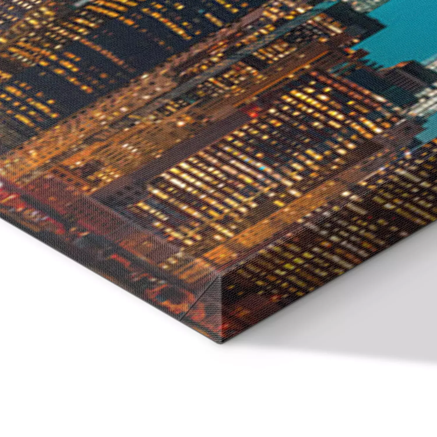 De print wordt aangebracht op hoogwaardig canvas dat op een schildersweefgetouw (spieraam) wordt gespannen. Omdat de print de zijranden bedekt, hoeft het ontwerp niet met een extra kader te worden omlijst. Wij raden ook composities aan die uit meerdere foto's bestaan en zo een coherente compositie vormen.