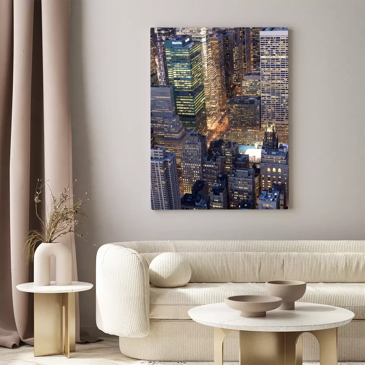 De print wordt aangebracht op hoogwaardig canvas dat op een schildersweefgetouw (spieraam) wordt gespannen. Omdat de print de zijranden bedekt, hoeft het ontwerp niet met een extra kader te worden omlijst. Wij raden ook composities aan die uit meerdere foto's bestaan en zo een coherente compositie vormen.