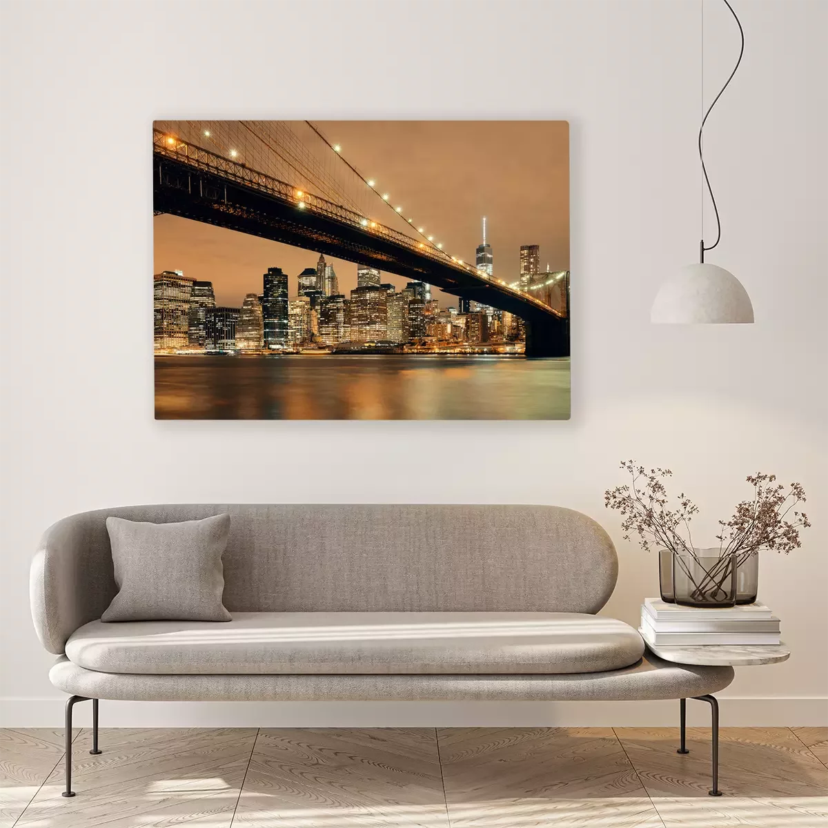 New York City skyline van Manhattan Brooklyn Bridge panorama