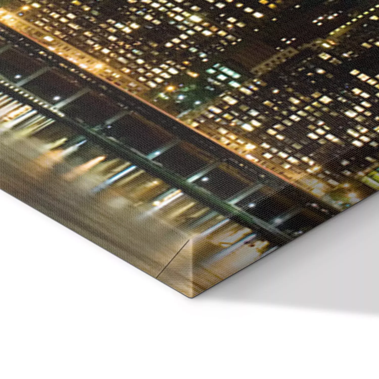 De print wordt aangebracht op hoogwaardig canvas dat op een schildersweefgetouw (spieraam) wordt gespannen. Omdat de print de zijranden bedekt, hoeft het ontwerp niet met een extra kader te worden omlijst. Wij raden ook composities aan die uit meerdere foto's bestaan en zo een coherente compositie vormen.