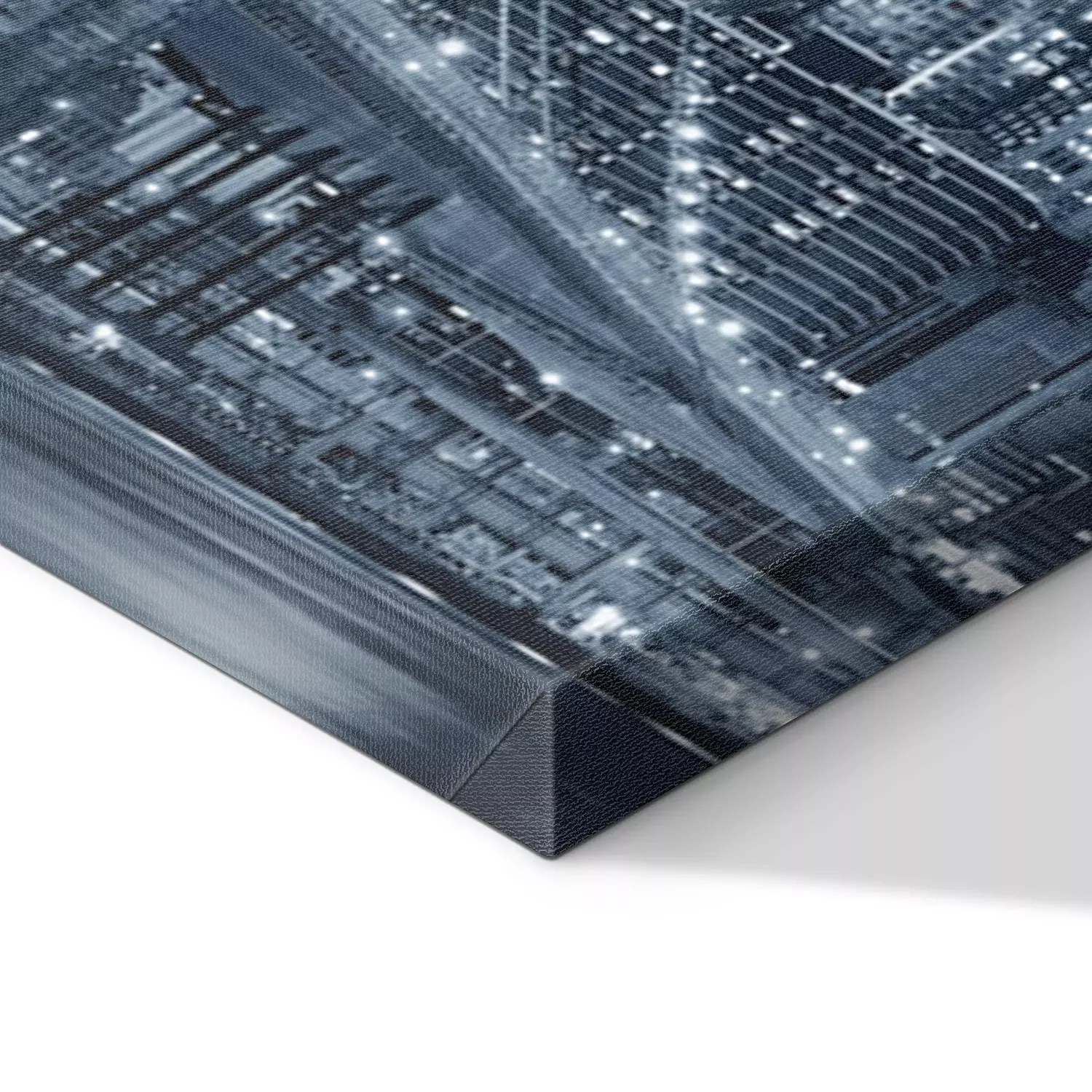 De print wordt aangebracht op hoogwaardig canvas dat op een schildersweefgetouw (spieraam) wordt gespannen. Omdat de print de zijranden bedekt, hoeft het ontwerp niet met een extra kader te worden omlijst. Wij raden ook composities aan die uit meerdere foto's bestaan en zo een coherente compositie vormen.