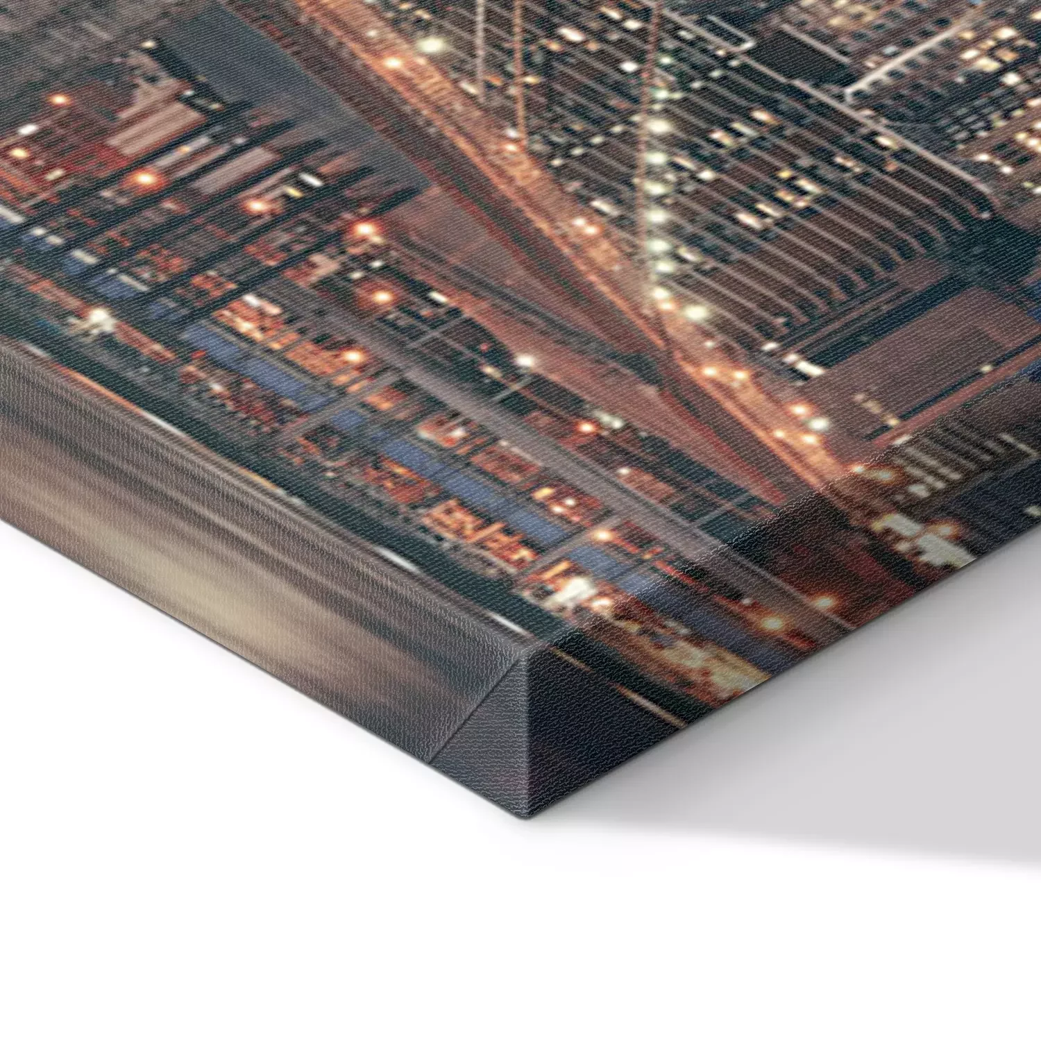 De print wordt aangebracht op hoogwaardig canvas dat op een schildersweefgetouw (spieraam) wordt gespannen. Omdat de print de zijranden bedekt, hoeft het ontwerp niet met een extra kader te worden omlijst. Wij raden ook composities aan die uit meerdere foto's bestaan en zo een coherente compositie vormen.