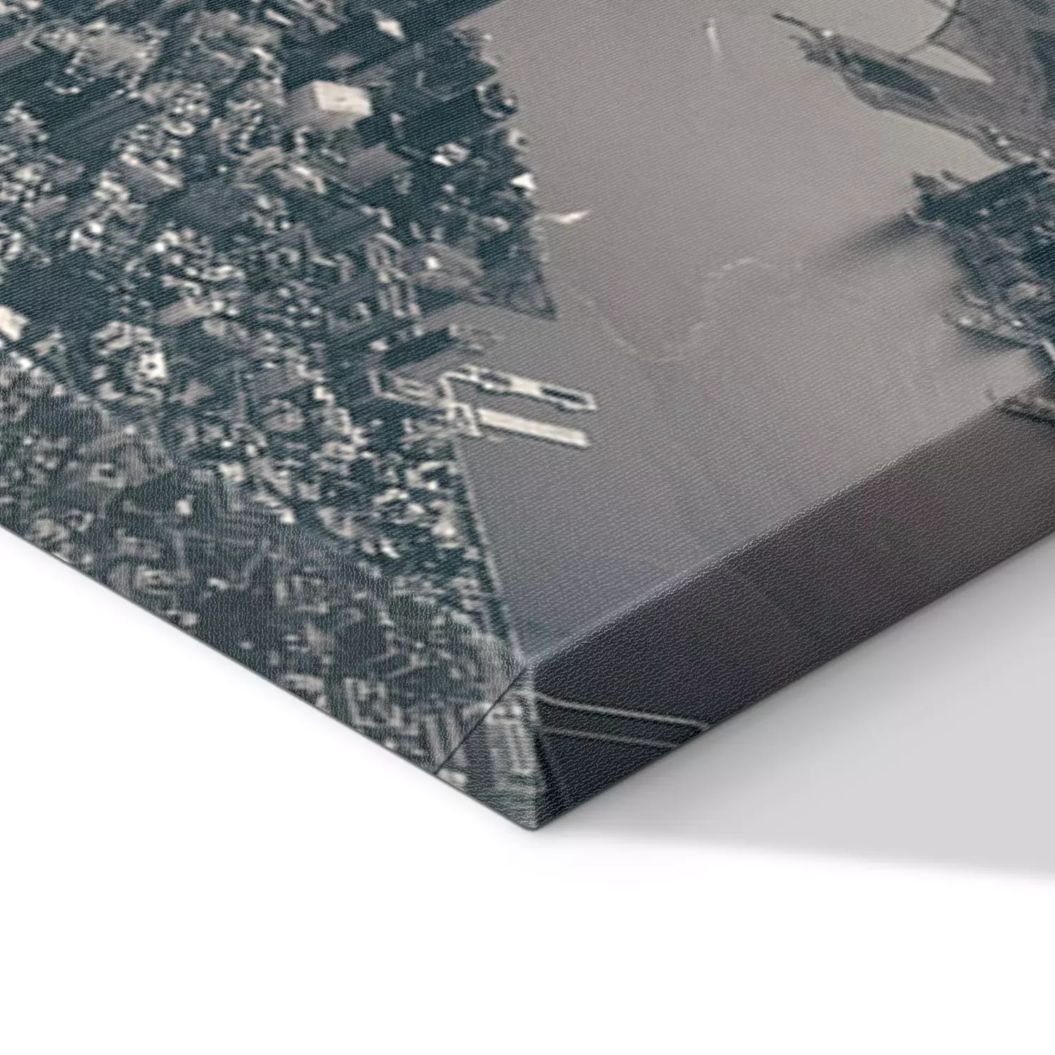 De print wordt aangebracht op hoogwaardig canvas dat op een schildersweefgetouw (spieraam) wordt gespannen. Omdat de print de zijranden bedekt, hoeft het ontwerp niet met een extra kader te worden omlijst. Wij raden ook composities aan die uit meerdere foto's bestaan en zo een coherente compositie vormen.