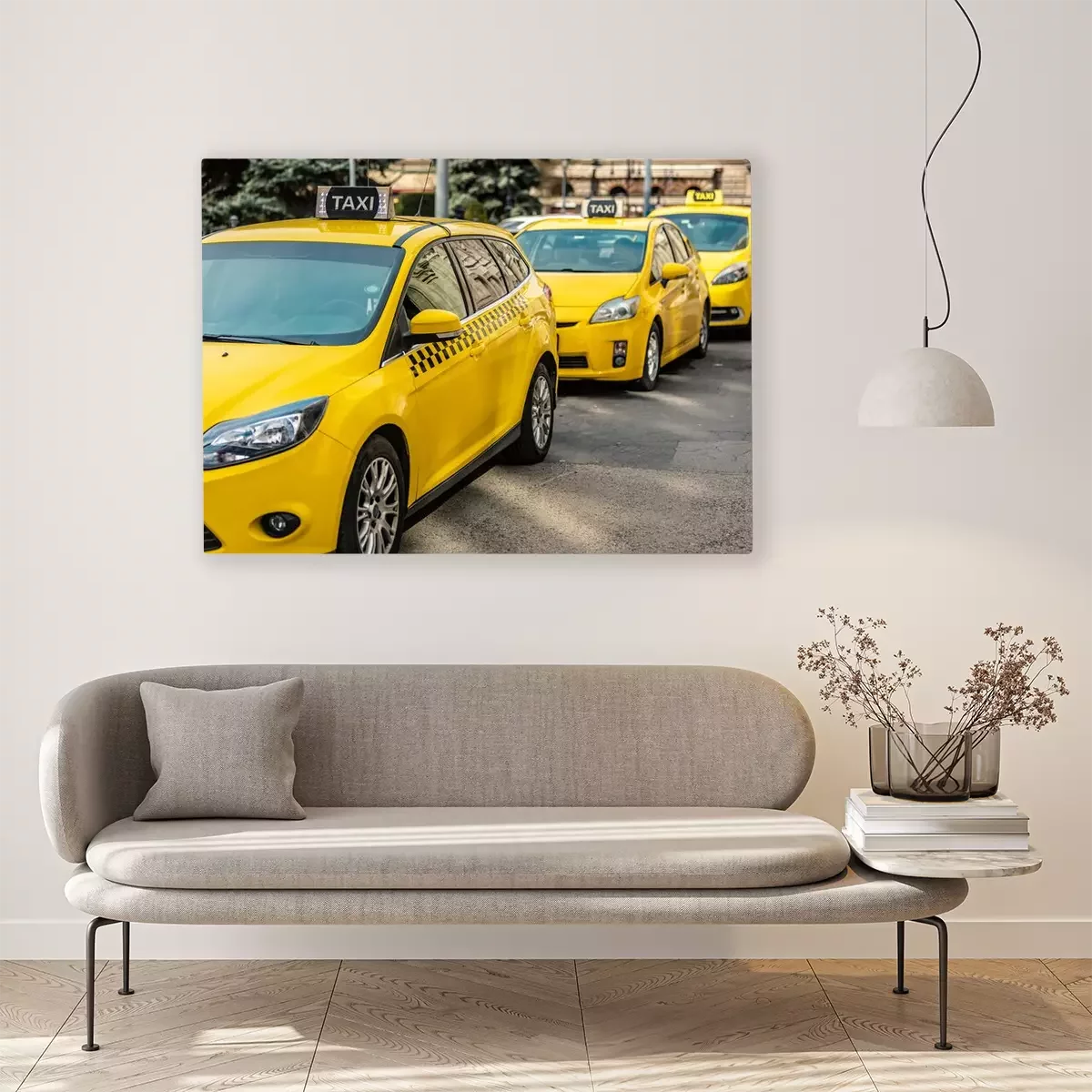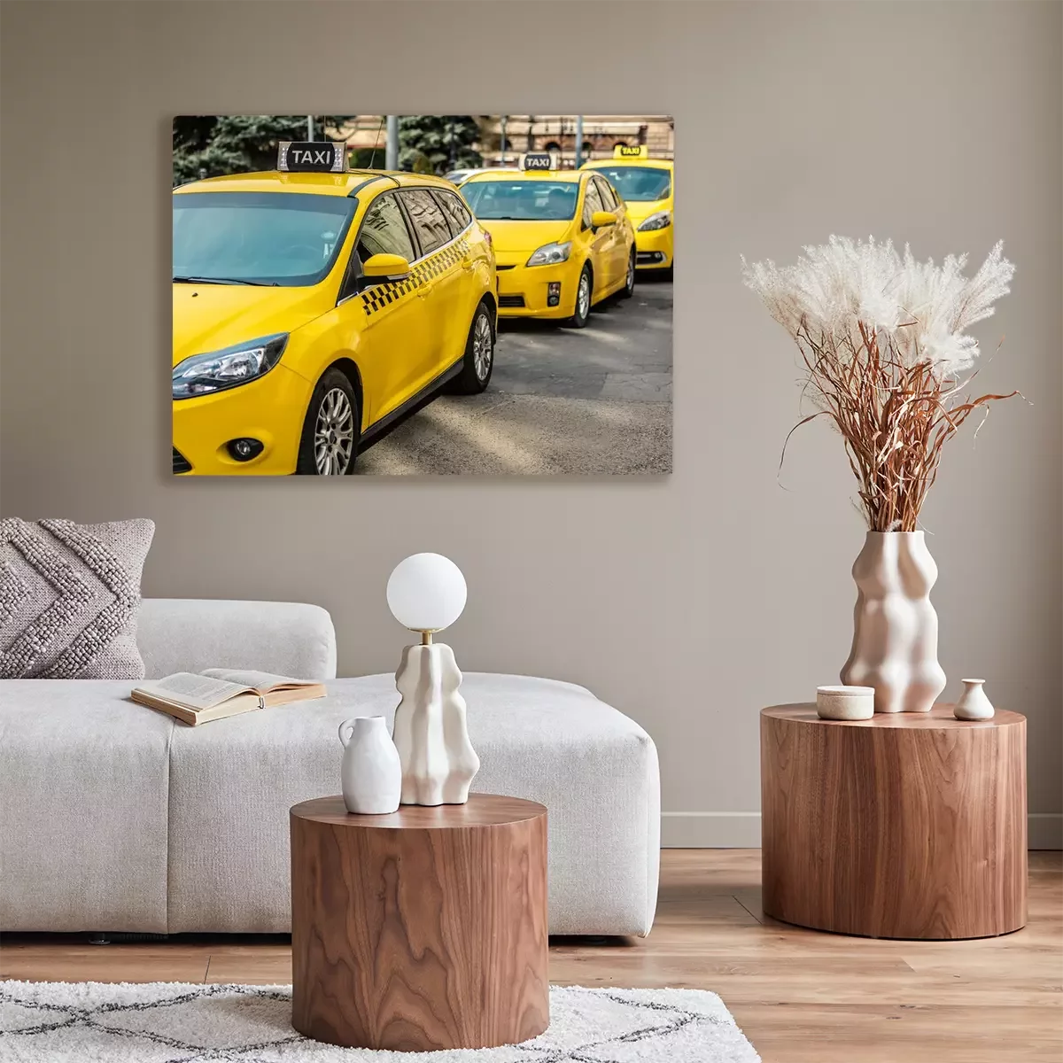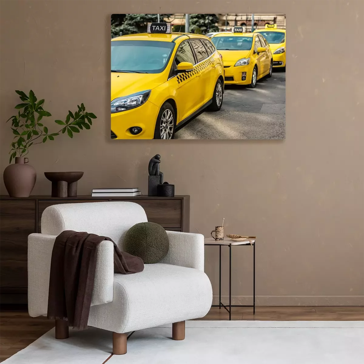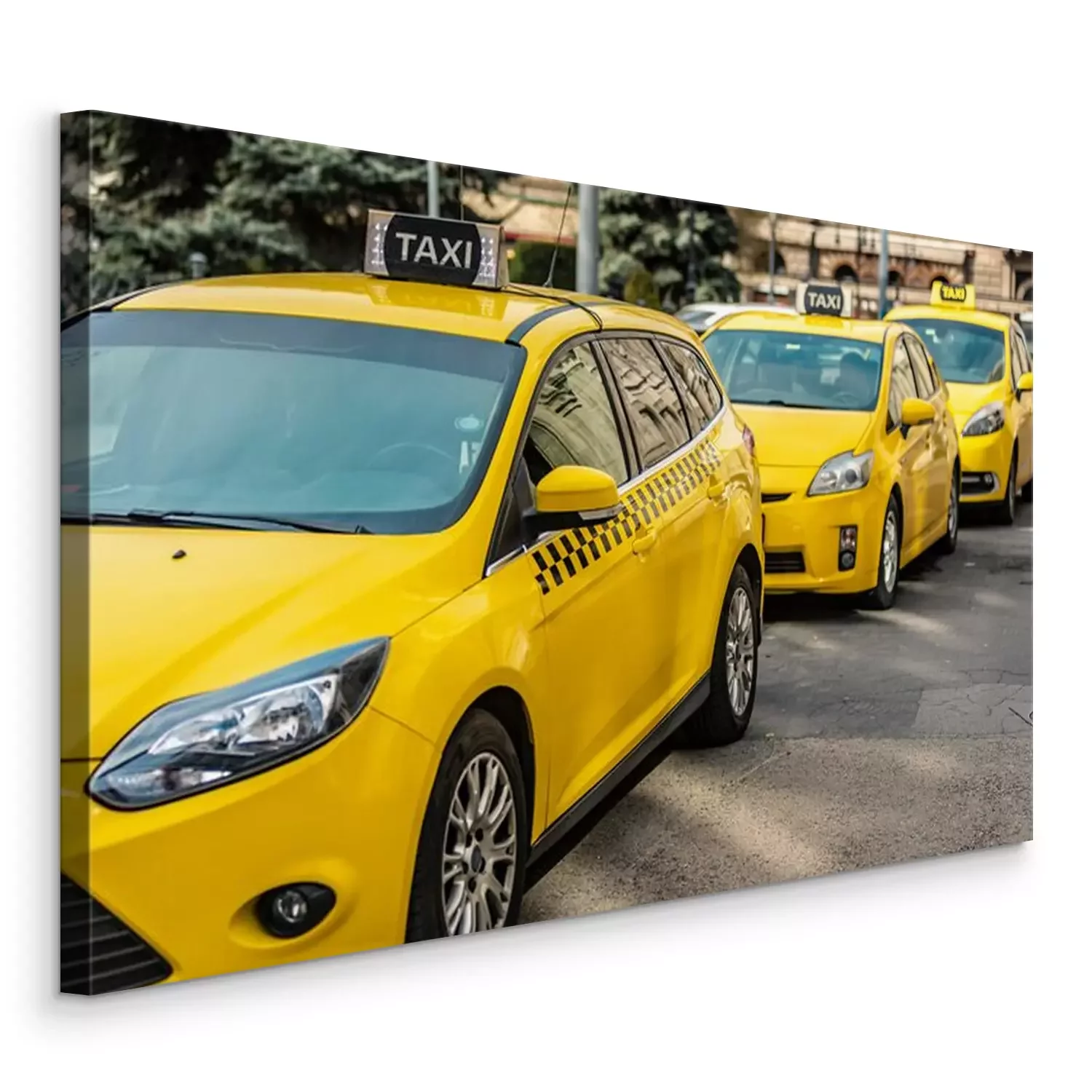 Canvas Many yellow taxi cars standing on the Hungarian road