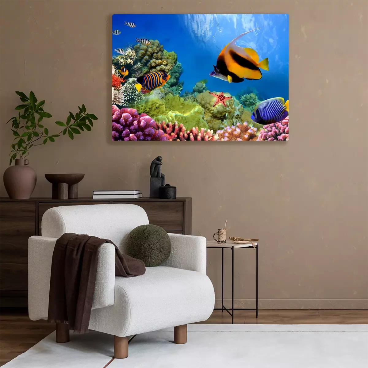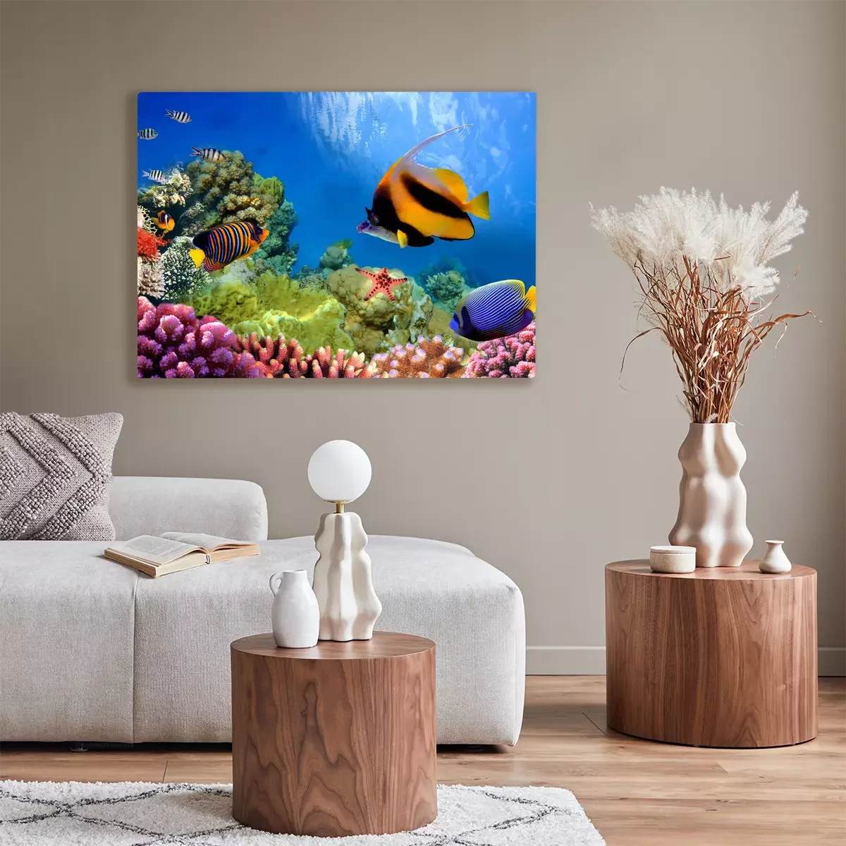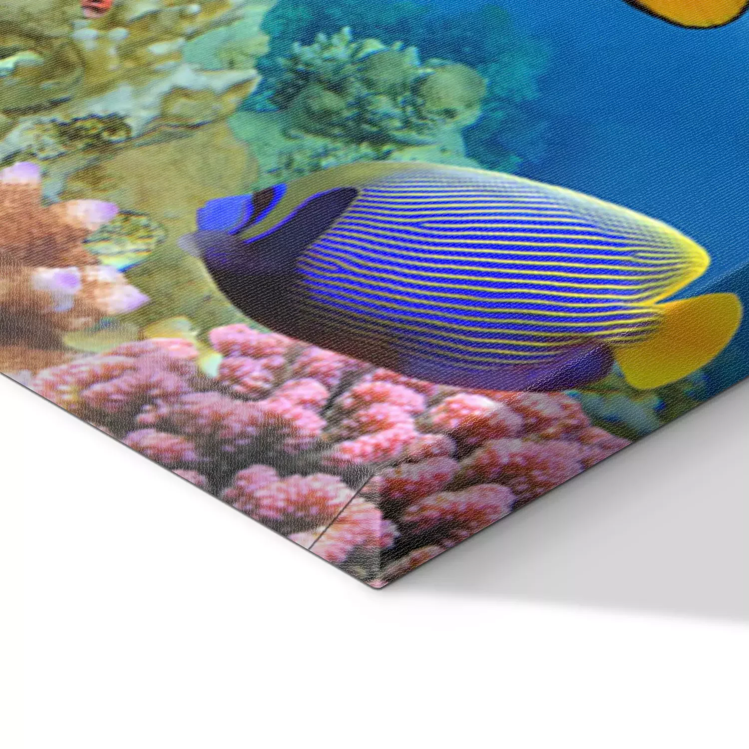 De print wordt aangebracht op hoogwaardig canvas dat op een schildersweefgetouw (spieraam) wordt gespannen. Omdat de print de zijranden bedekt, hoeft het ontwerp niet met een extra kader te worden omlijst. Wij raden ook composities aan die uit meerdere foto's bestaan en zo een coherente compositie vormen.