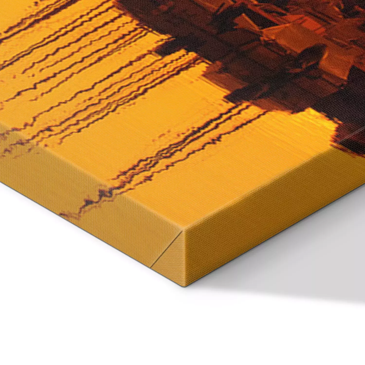De print wordt aangebracht op hoogwaardig canvas dat op een schildersweefgetouw (spieraam) wordt gespannen. Omdat de print de zijranden bedekt, hoeft het ontwerp niet met een extra kader te worden omlijst. Wij raden ook composities aan die uit meerdere foto's bestaan en zo een coherente compositie vormen.