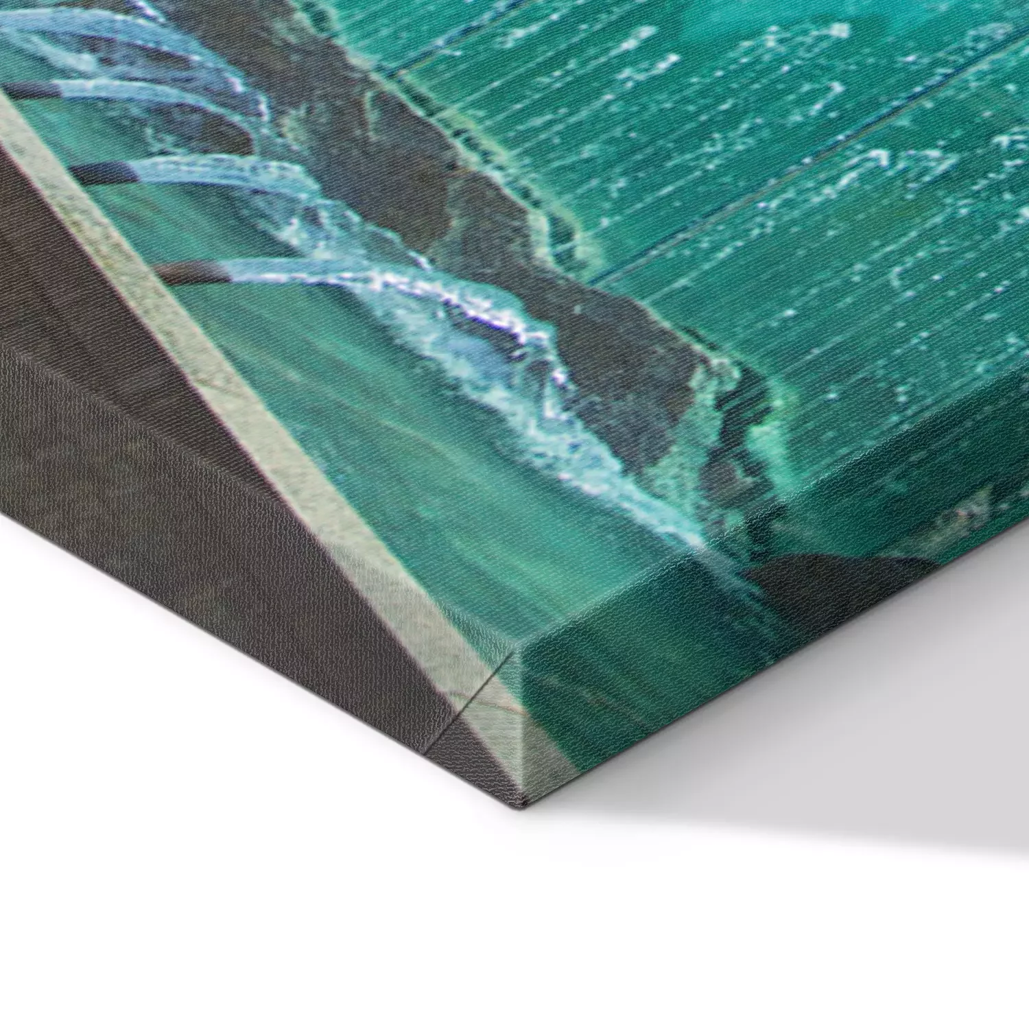 De print wordt aangebracht op hoogwaardig canvas dat op een schildersweefgetouw (spieraam) wordt gespannen. Omdat de print de zijranden bedekt, hoeft het ontwerp niet met een extra kader te worden omlijst. Wij raden ook composities aan die uit meerdere foto's bestaan en zo een coherente compositie vormen.