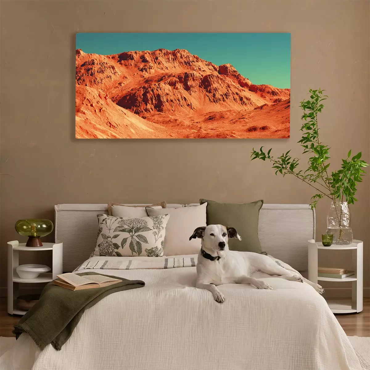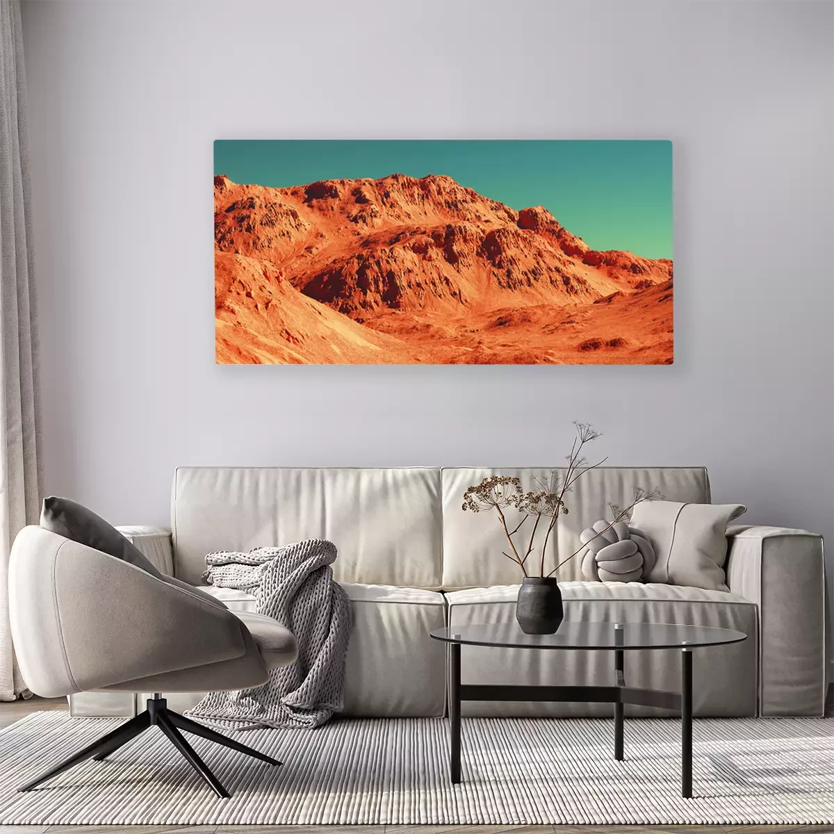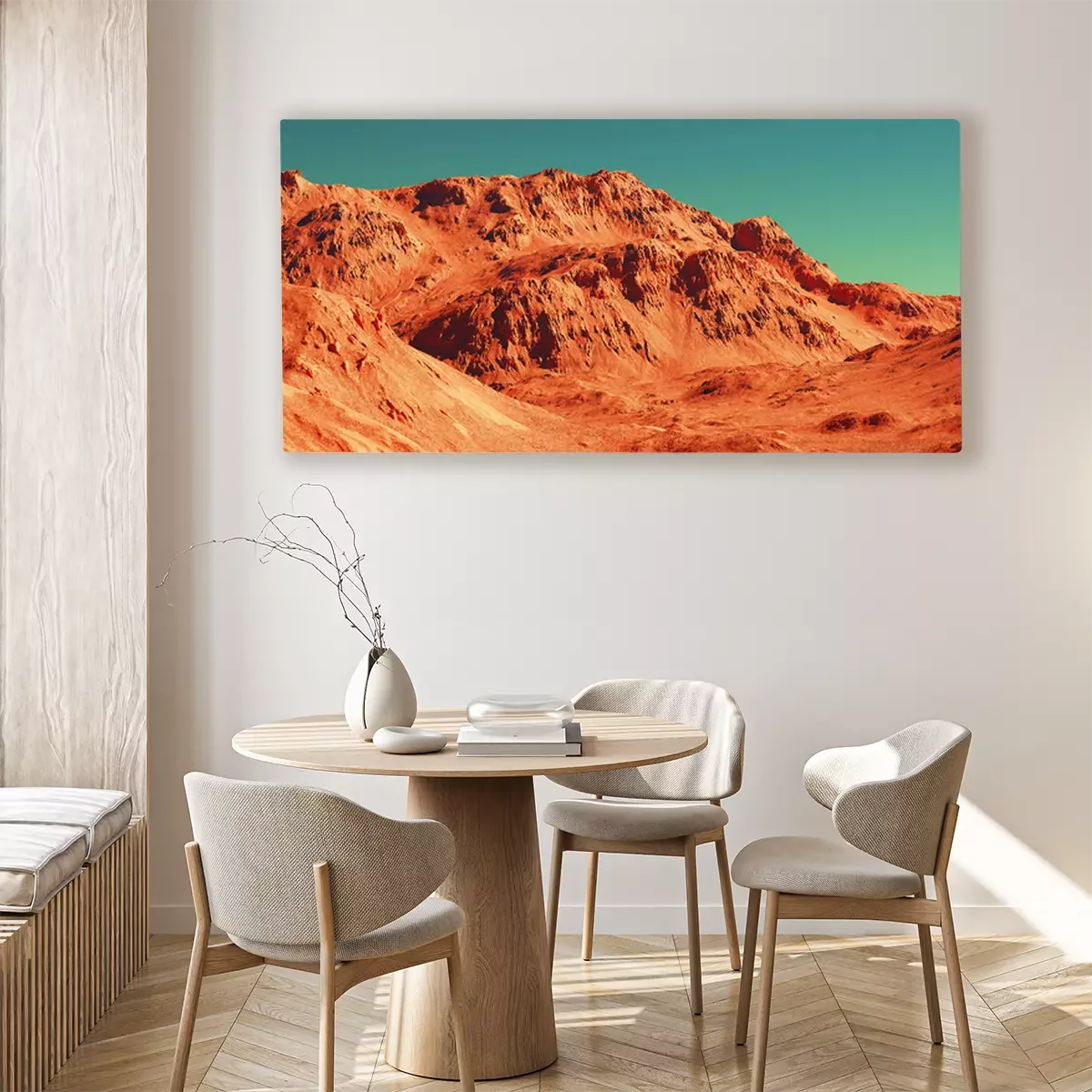Canvas: Mars landscape, 3d render of imaginary mars planet terrain, science fiction illustration.