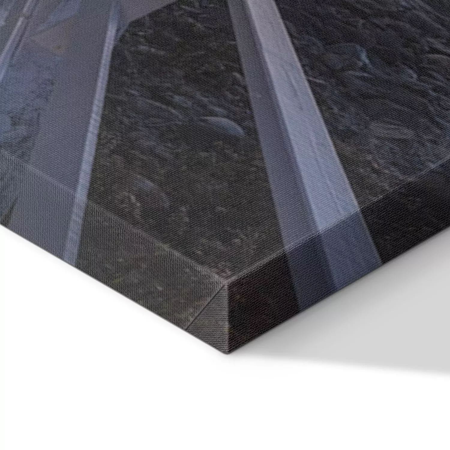 De print wordt aangebracht op hoogwaardig canvas dat op een schildersweefgetouw (spieraam) wordt gespannen. Omdat de print de zijranden bedekt, hoeft het ontwerp niet met een extra kader te worden omlijst. Wij raden ook composities aan die uit meerdere foto's bestaan en zo een coherente compositie vormen.