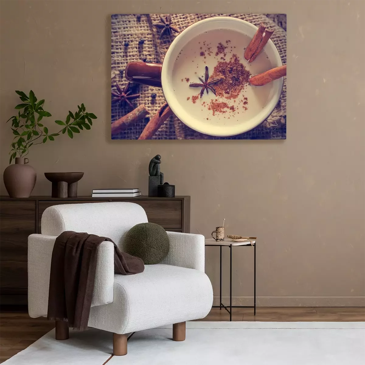 Canvas: masala chai tea with spices and star Anise, cinnamon stick