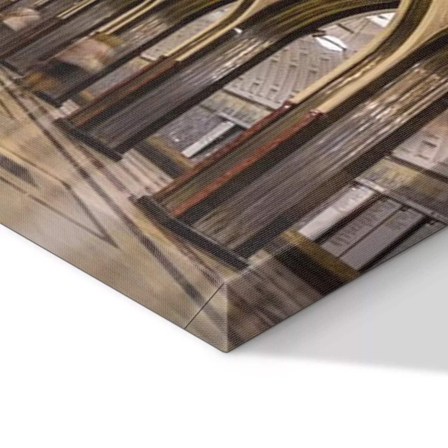 De print wordt aangebracht op hoogwaardig canvas dat op een schildersweefgetouw (spieraam) wordt gespannen. Omdat de print de zijranden bedekt, hoeft het ontwerp niet met een extra kader te worden omlijst. Wij raden ook composities aan die uit meerdere foto's bestaan en zo een coherente compositie vormen.