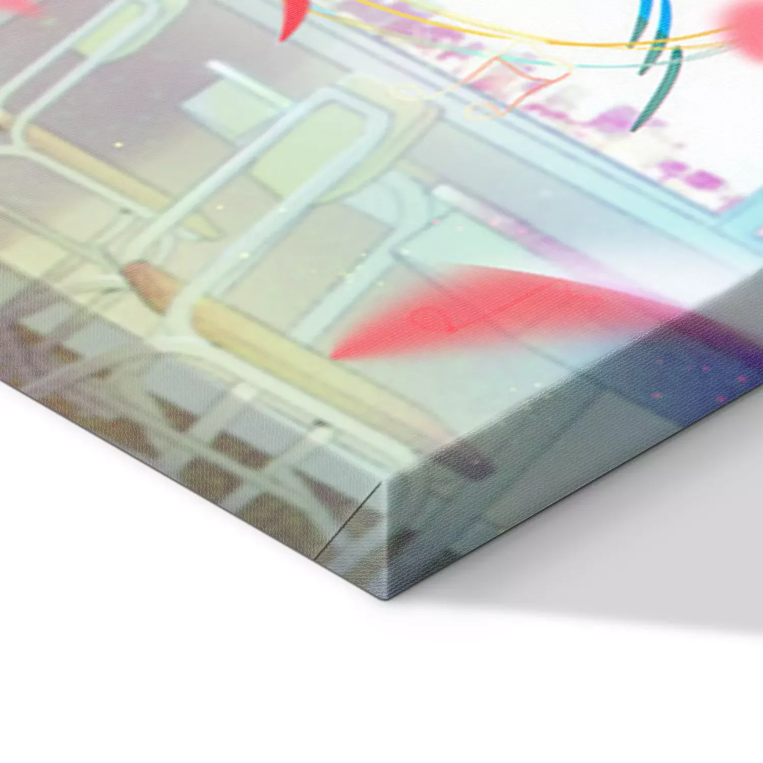 De print wordt aangebracht op hoogwaardig canvas dat op een schildersweefgetouw (spieraam) wordt gespannen. Omdat de print de zijranden bedekt, hoeft het ontwerp niet met een extra kader te worden omlijst. Wij raden ook composities aan die uit meerdere foto's bestaan en zo een coherente compositie vormen.