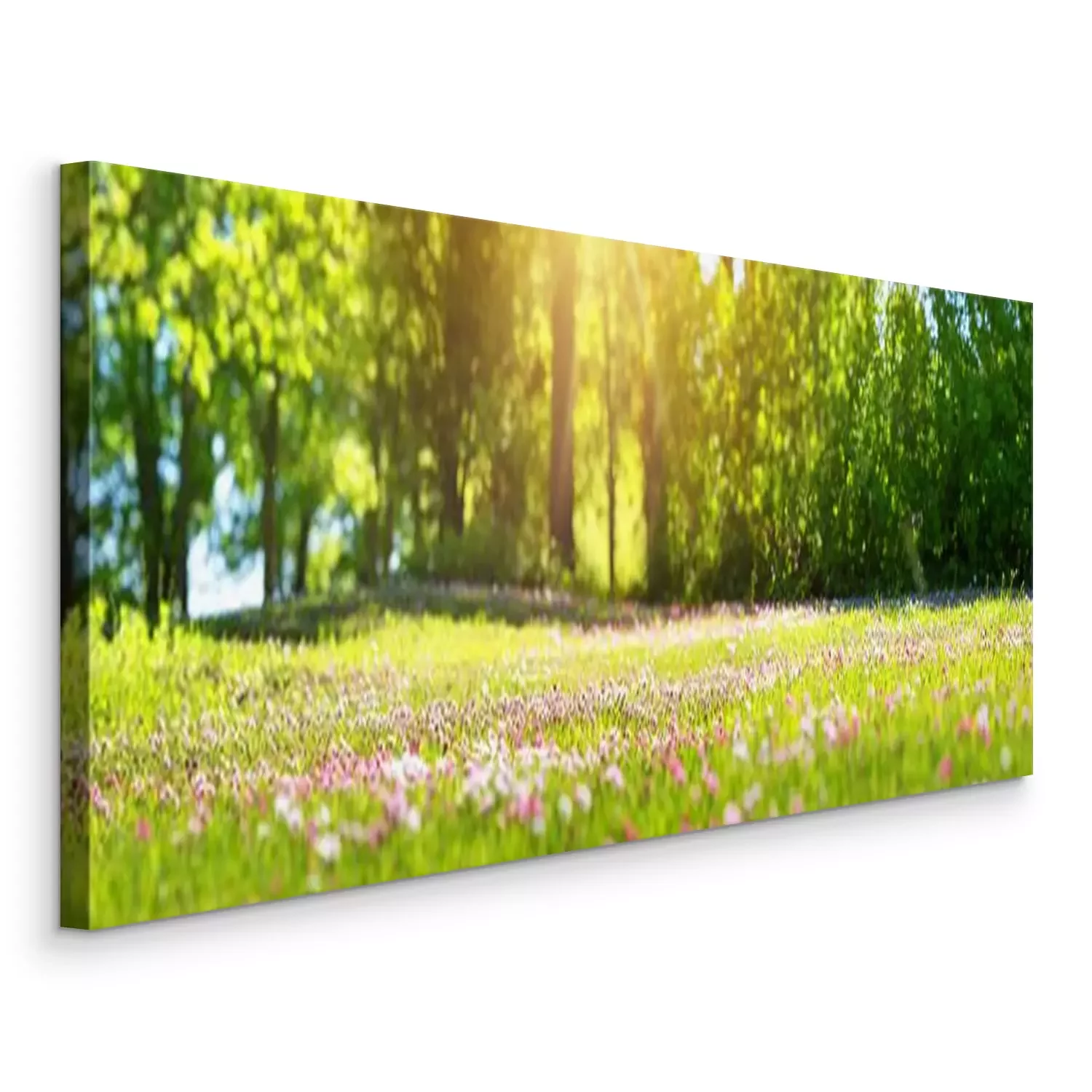 Canvas Meadow with lots of white and pink spring daisy flowers in sunny day