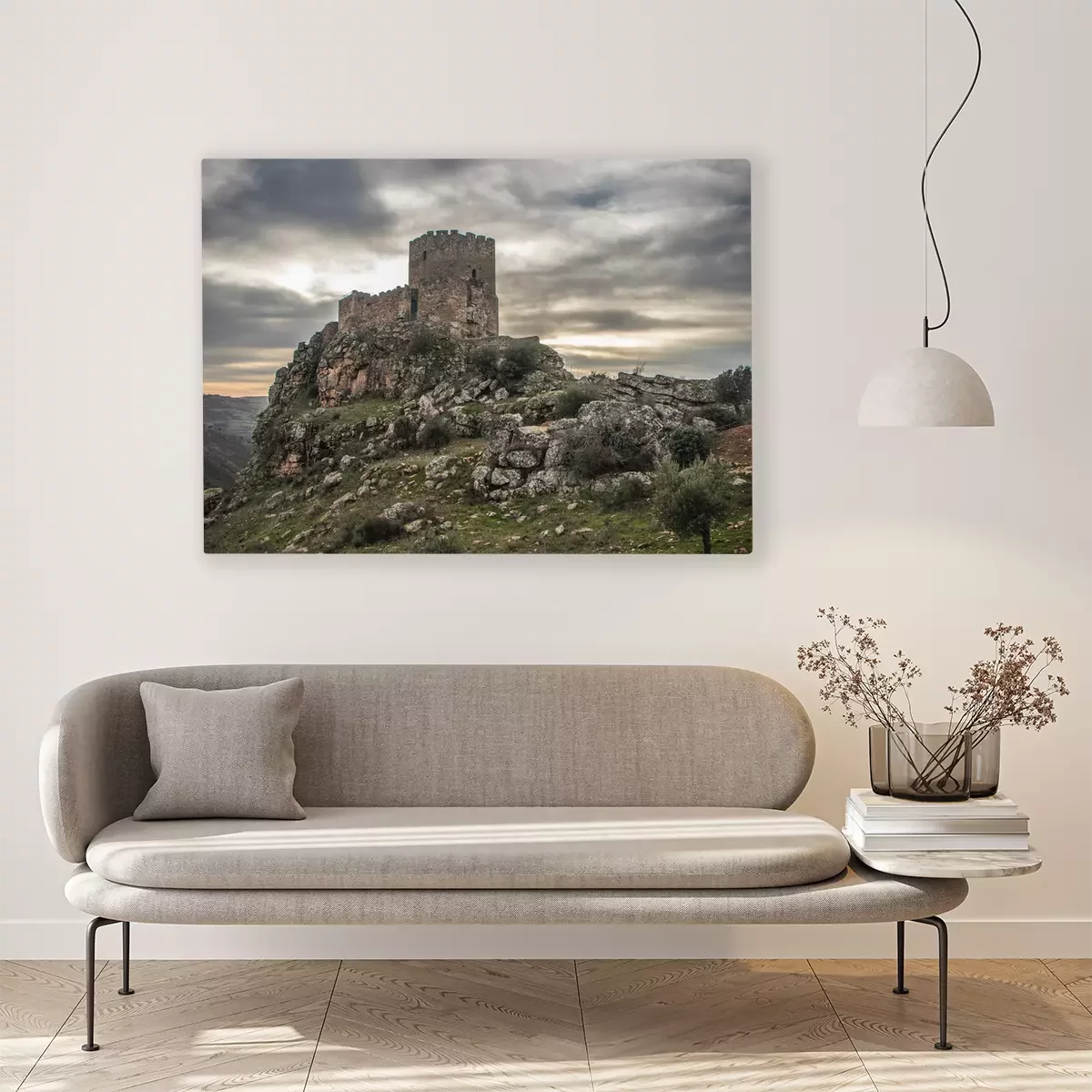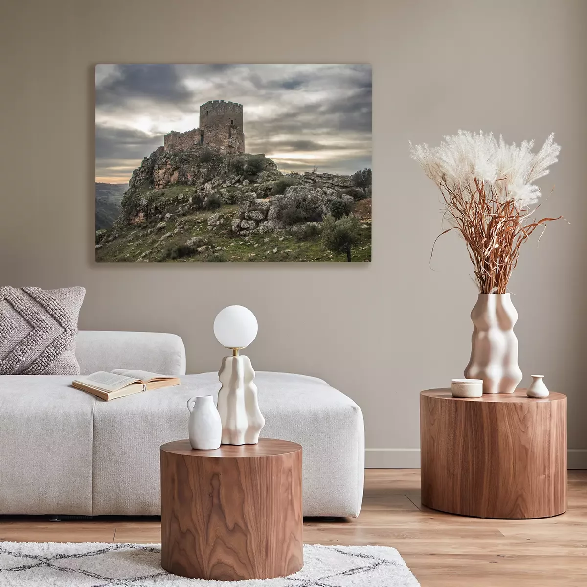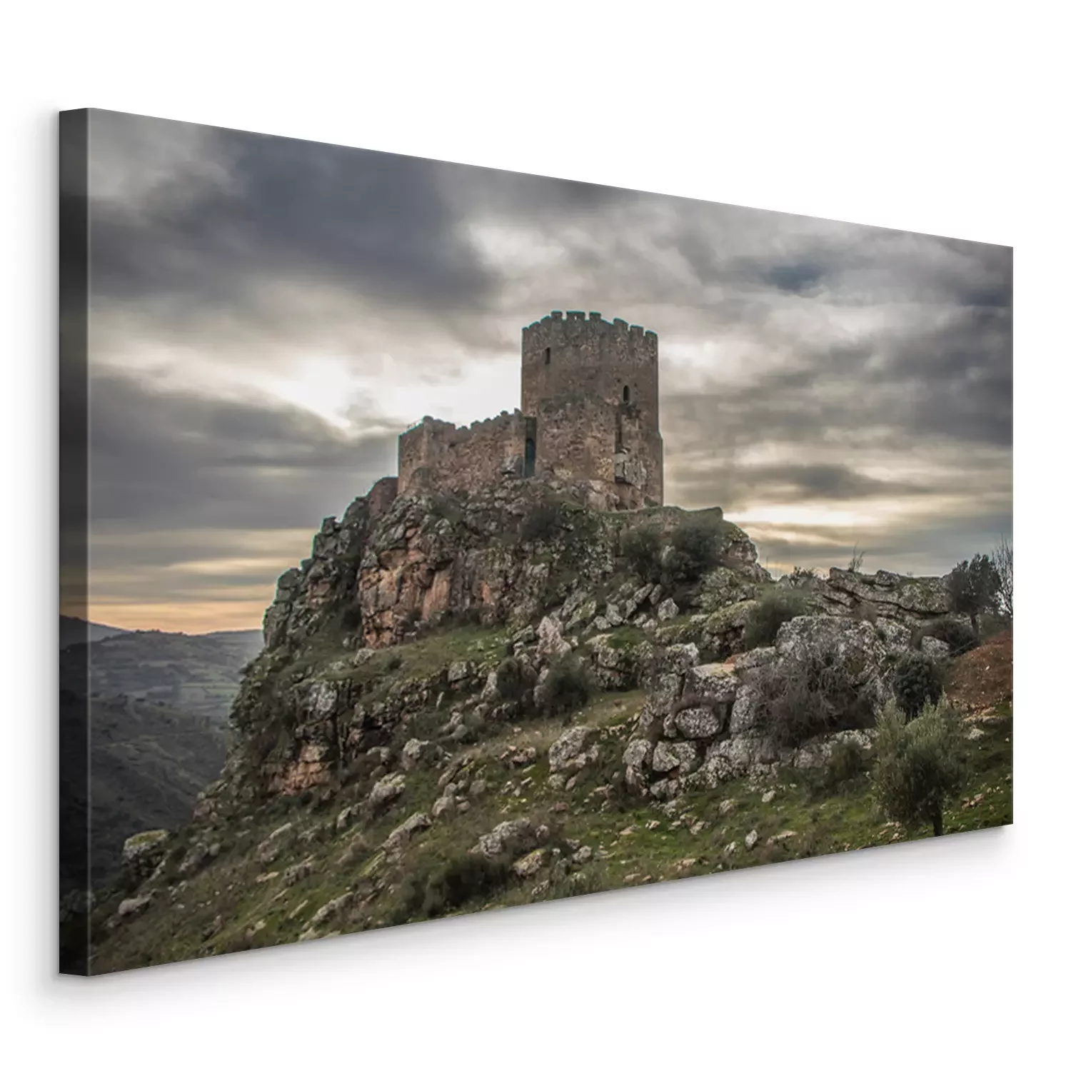 Canvas: Medieval castle on a cliff on a cloudy day, Algoso, Vimioso, Miranda do Douro, Bragança, Tras-os-Montes, Portugal