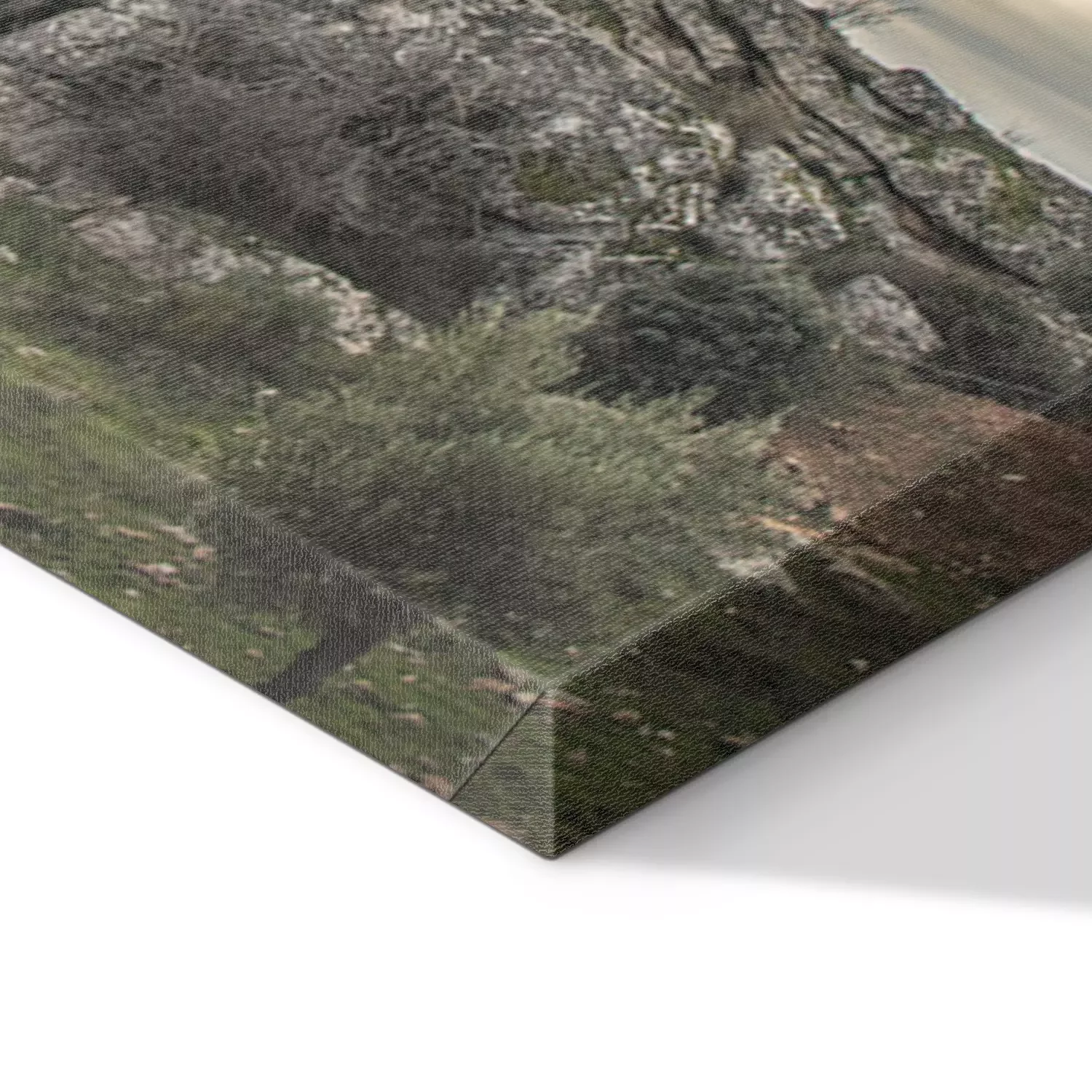 De print wordt aangebracht op hoogwaardig canvas dat op een schildersweefgetouw (spieraam) wordt gespannen. Omdat de print de zijranden bedekt, hoeft het ontwerp niet met een extra kader te worden omlijst. Wij raden ook composities aan die uit meerdere foto's bestaan en zo een coherente compositie vormen.