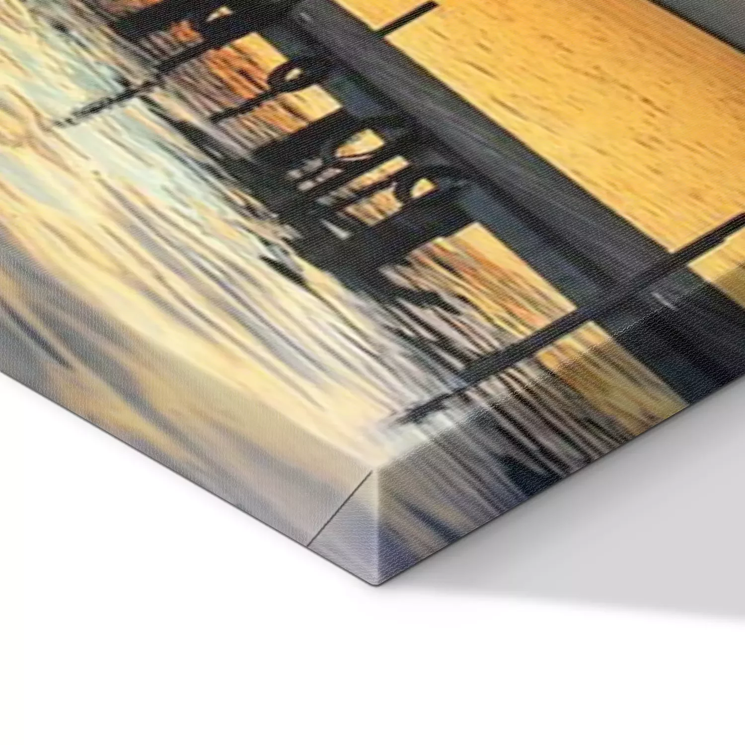 De print wordt aangebracht op hoogwaardig canvas dat op een schildersweefgetouw (spieraam) wordt gespannen. Omdat de print de zijranden bedekt, hoeft het ontwerp niet met een extra kader te worden omlijst. Wij raden ook composities aan die uit meerdere foto's bestaan en zo een coherente compositie vormen.