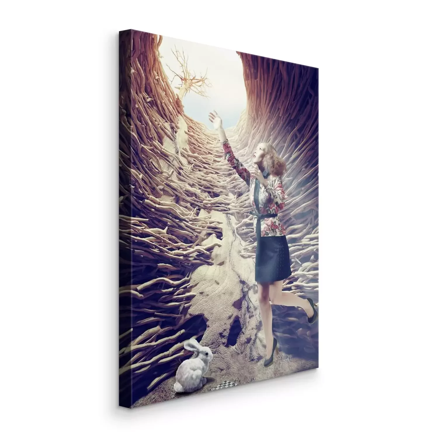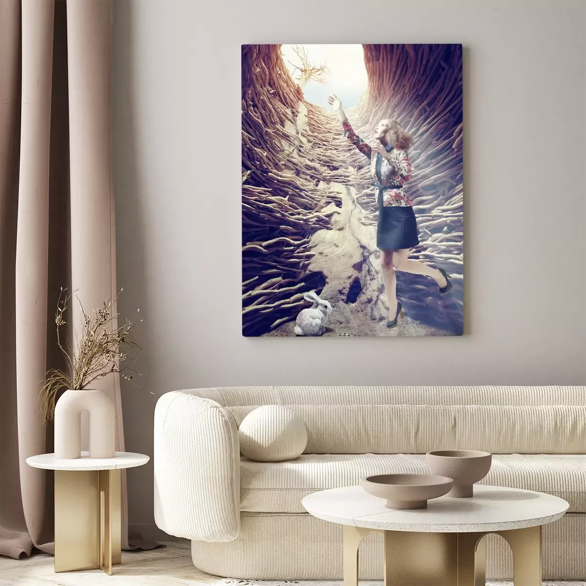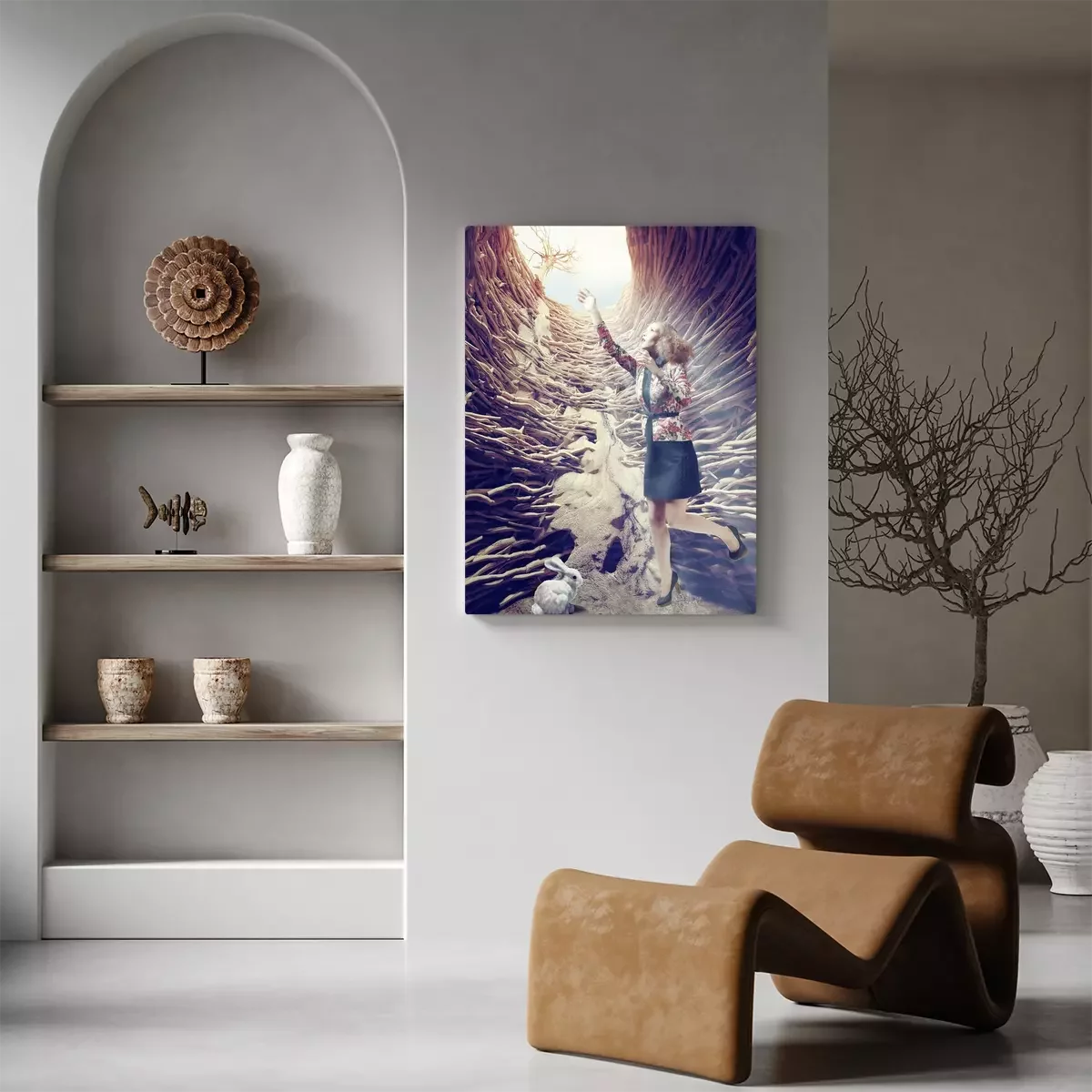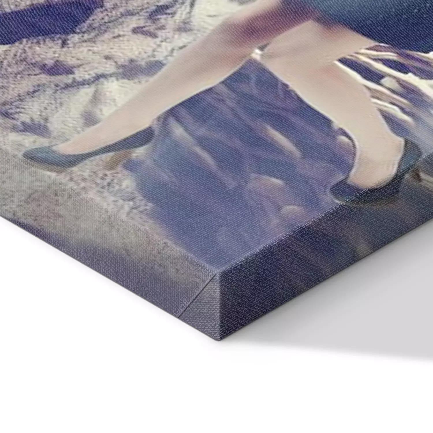 De print wordt aangebracht op hoogwaardig canvas dat op een schildersweefgetouw (spieraam) wordt gespannen. Omdat de print de zijranden bedekt, hoeft het ontwerp niet met een extra kader te worden omlijst. Wij raden ook composities aan die uit meerdere foto's bestaan en zo een coherente compositie vormen.