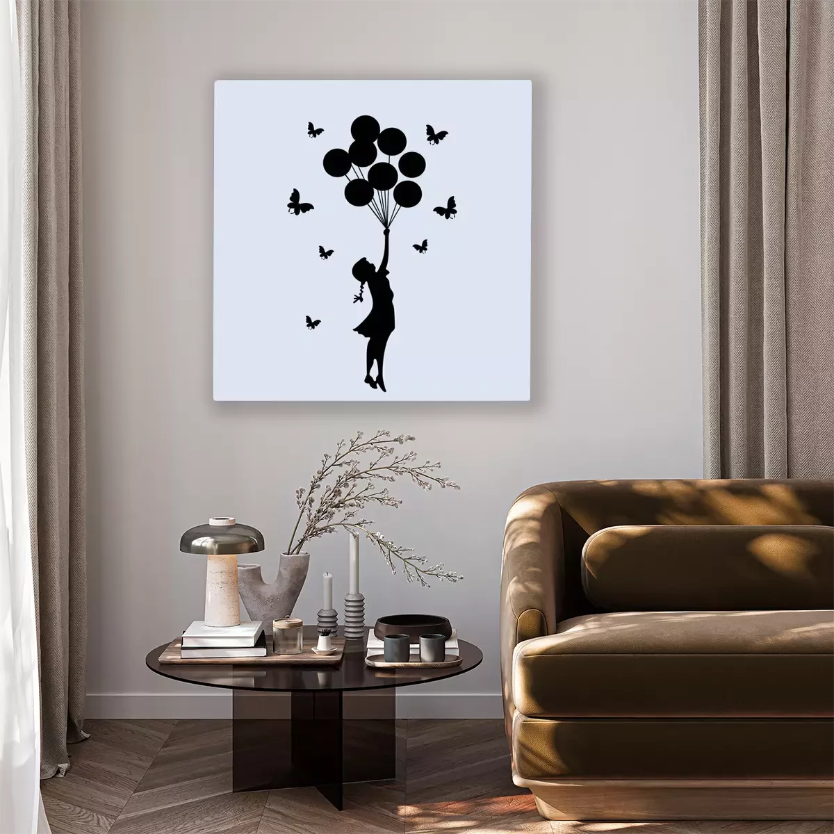 Canvas: Meisje met ballonnen in Banksy stijl