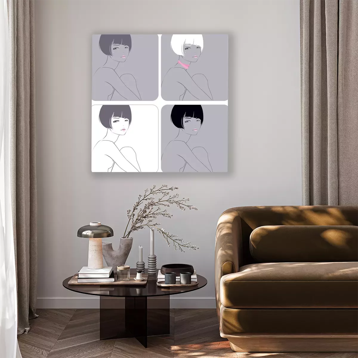De print wordt aangebracht op hoogwaardig canvas dat op een schildersweefgetouw (spieraam) wordt gespannen. Omdat de print de zijranden bedekt, hoeft het ontwerp niet met een extra kader te worden omlijst. Wij raden ook composities aan die uit meerdere foto's bestaan en zo een coherente compositie vormen.