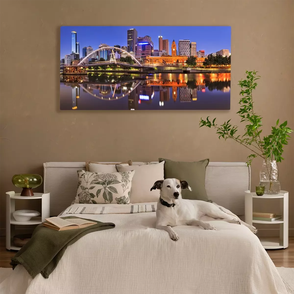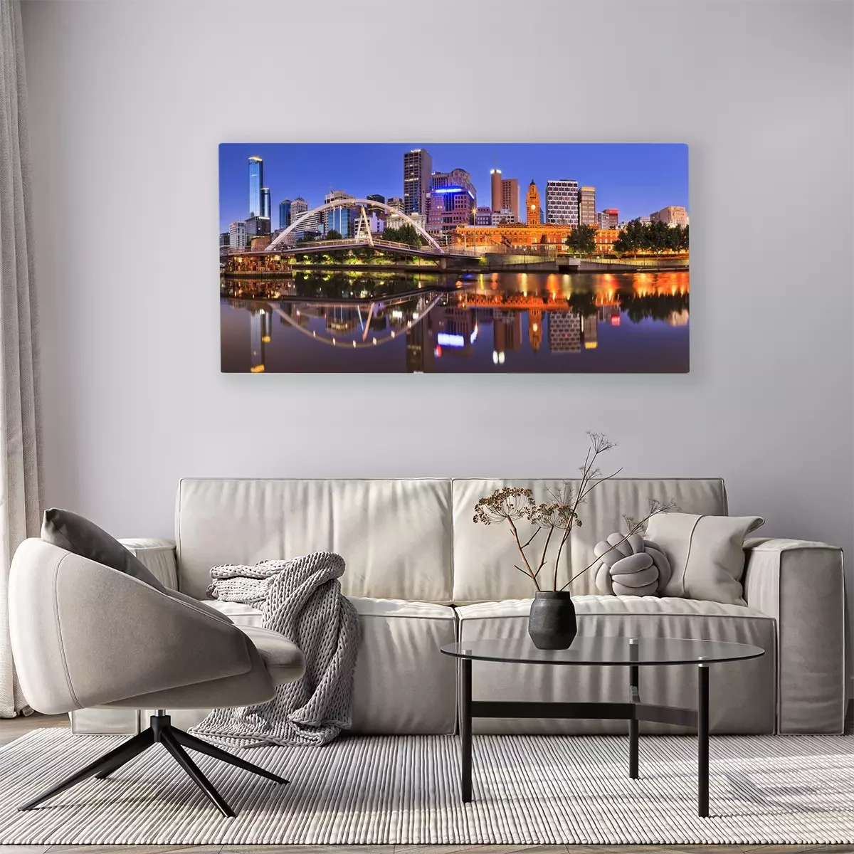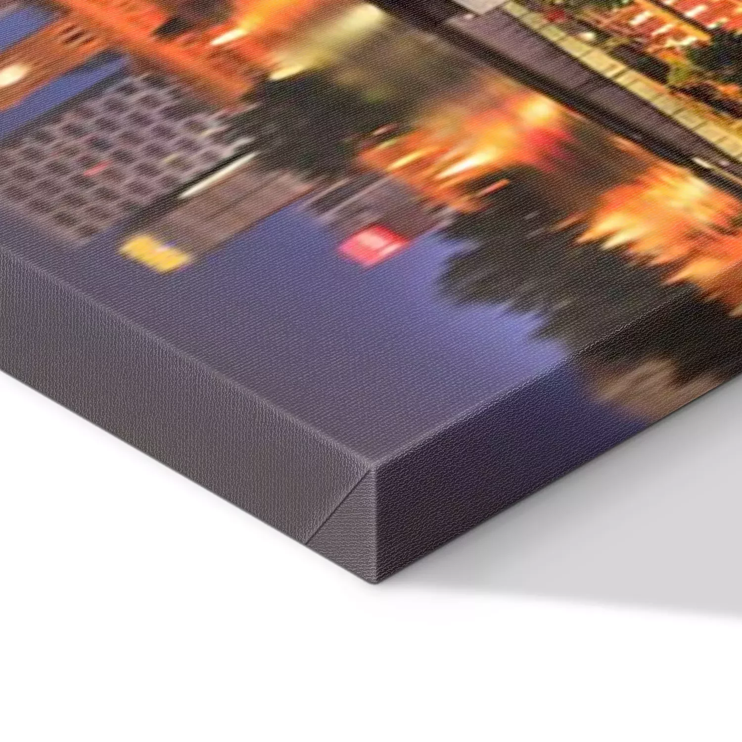 De print wordt aangebracht op hoogwaardig canvas dat op een schildersweefgetouw (spieraam) wordt gespannen. Omdat de print de zijranden bedekt, hoeft het ontwerp niet met een extra kader te worden omlijst. Wij raden ook composities aan die uit meerdere foto's bestaan en zo een coherente compositie vormen.