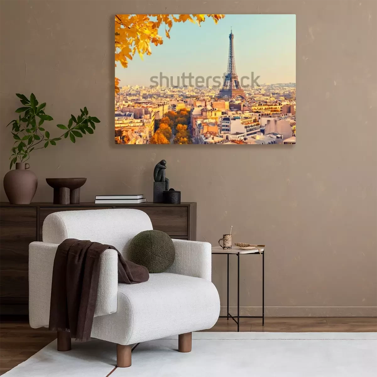 Canvas: Mening over de toren van Eiffel bij zonsondergang, Parijs, Frankrijk