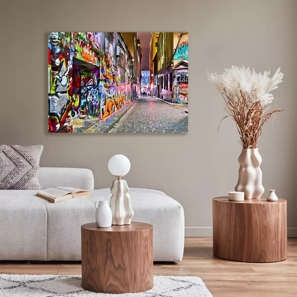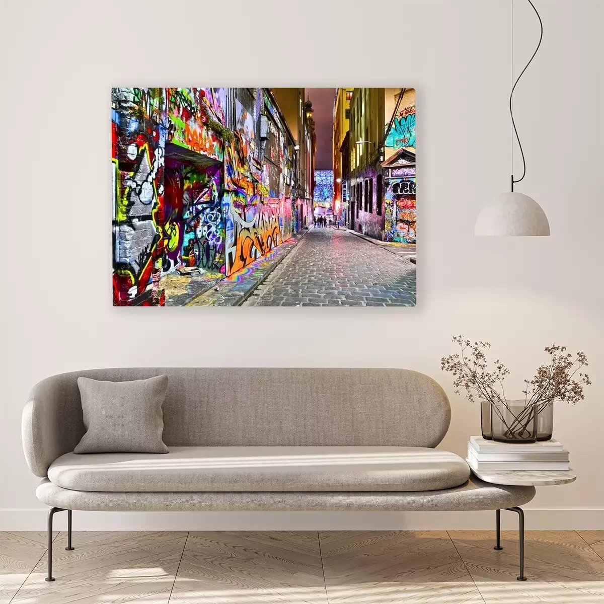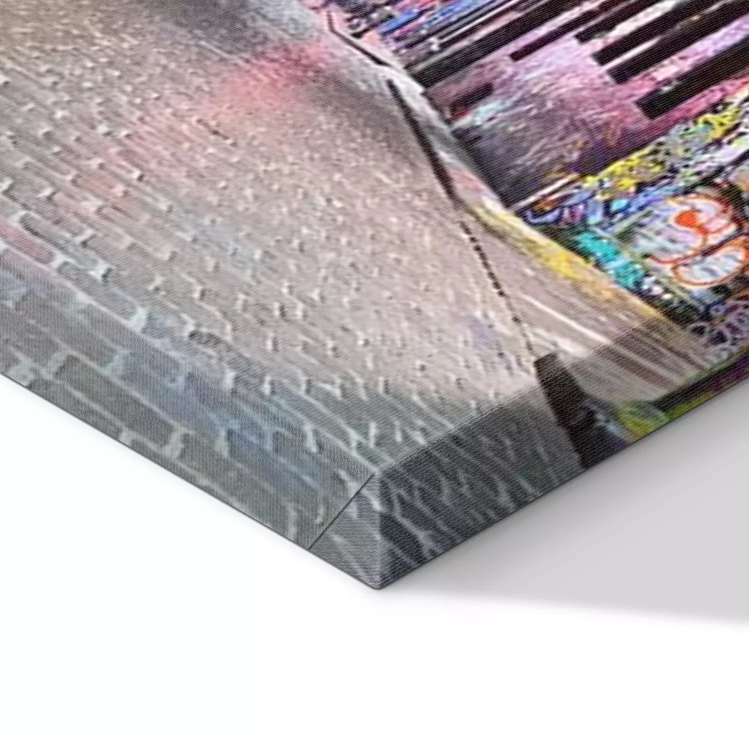 De print wordt aangebracht op hoogwaardig canvas dat op een schildersweefgetouw (spieraam) wordt gespannen. Omdat de print de zijranden bedekt, hoeft het ontwerp niet met een extra kader te worden omlijst. Wij raden ook composities aan die uit meerdere foto's bestaan en zo een coherente compositie vormen.