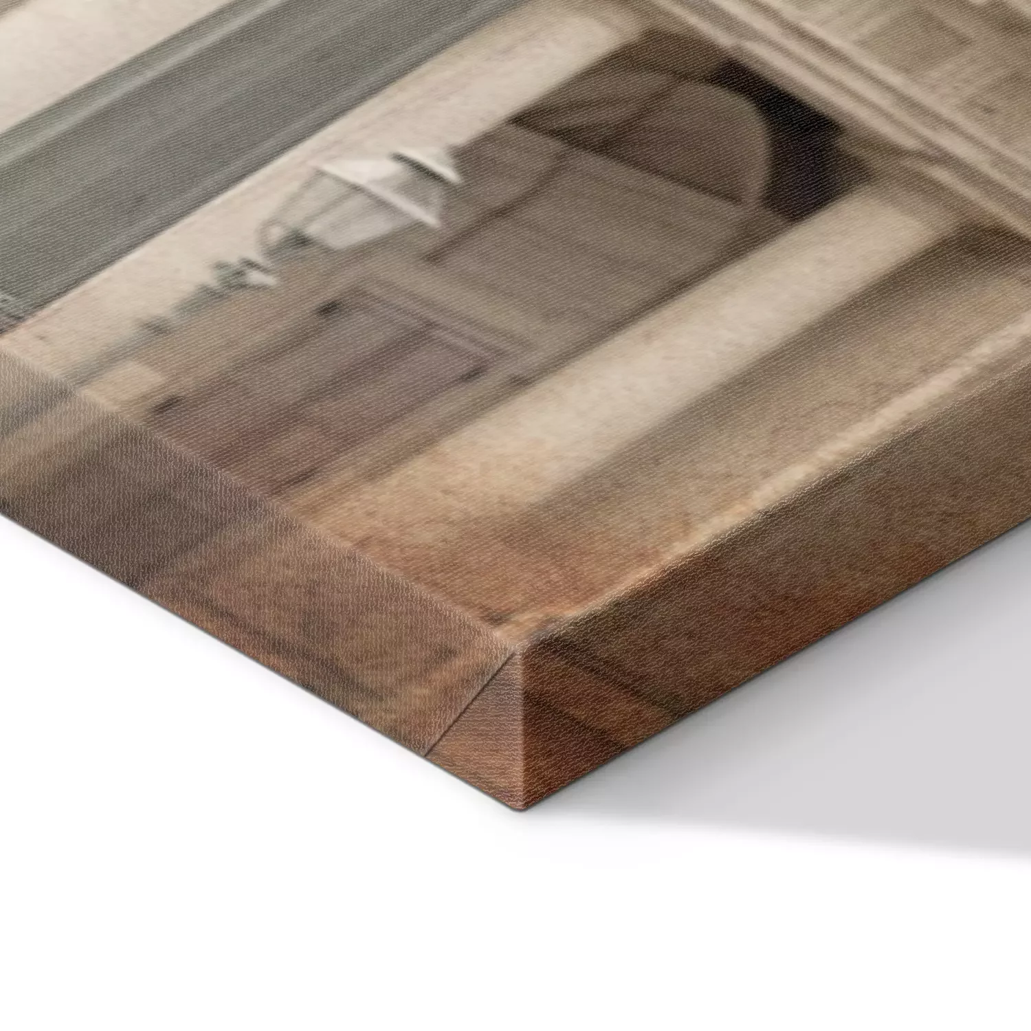 De print wordt aangebracht op hoogwaardig canvas dat op een schildersweefgetouw (spieraam) wordt gespannen. Omdat de print de zijranden bedekt, hoeft het ontwerp niet met een extra kader te worden omlijst. Wij raden ook composities aan die uit meerdere foto's bestaan en zo een coherente compositie vormen.