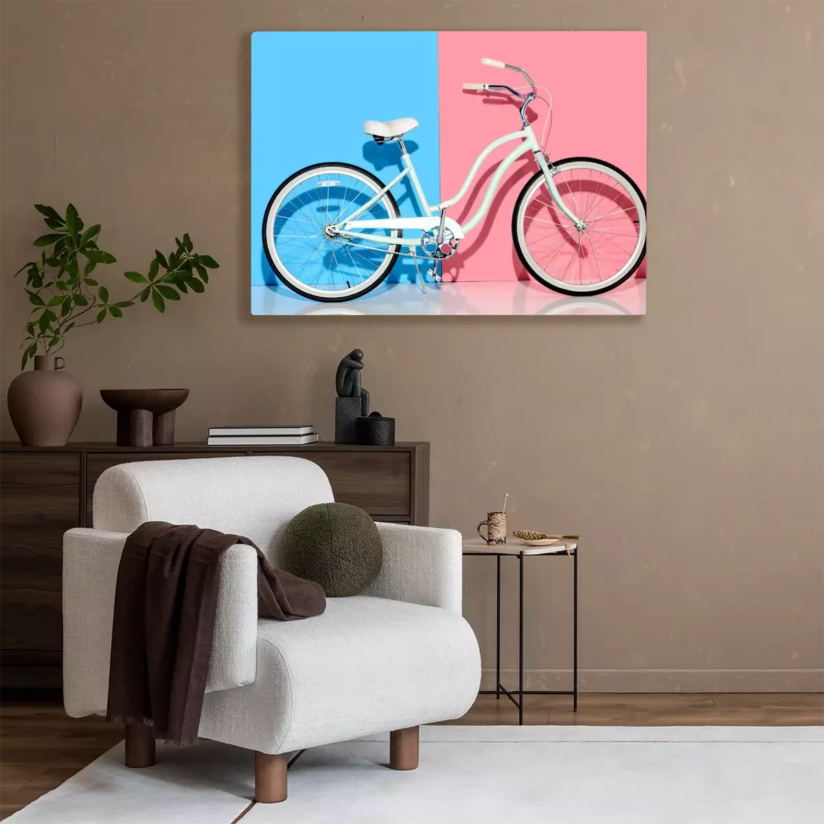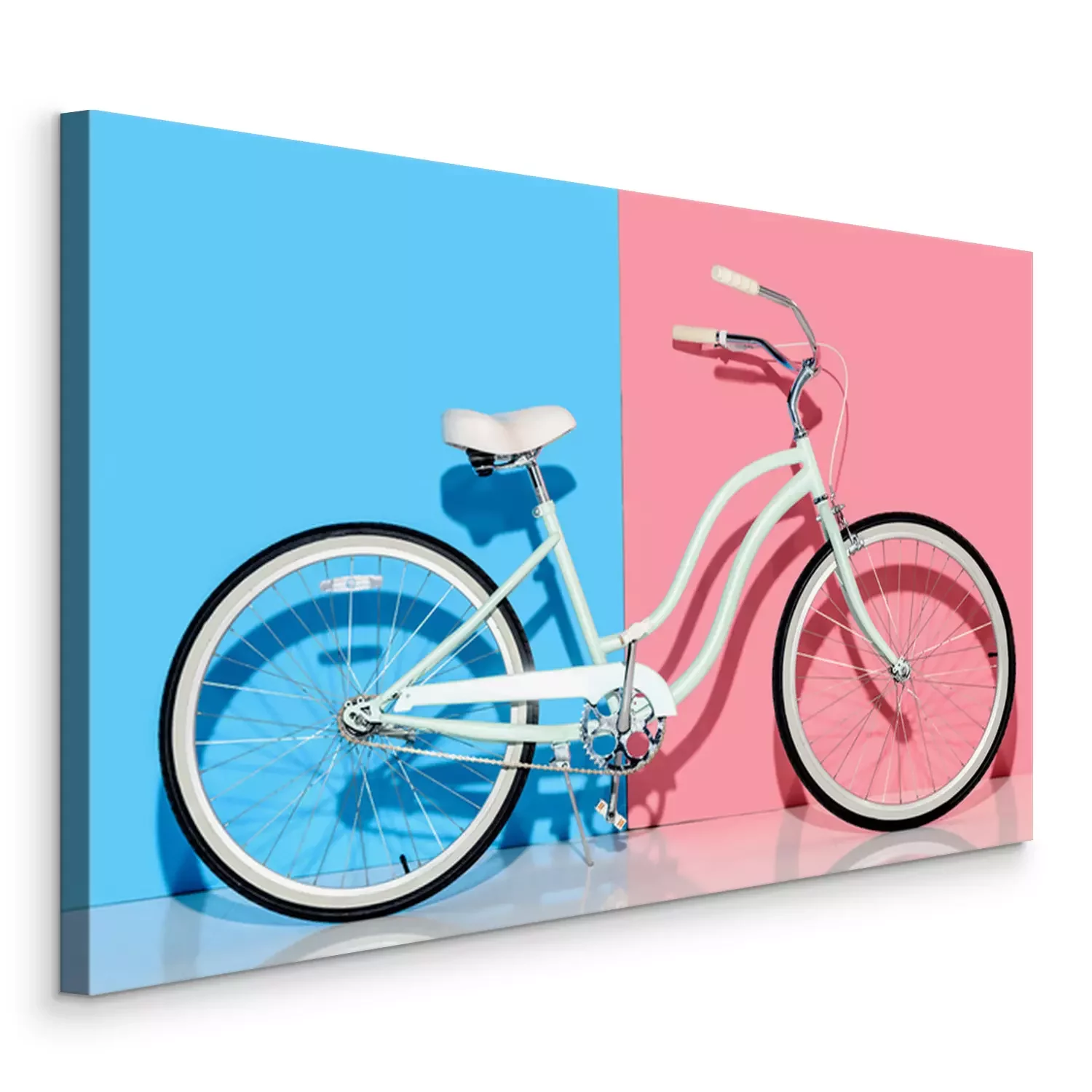 Canvas: Mening van stadsfiets op roze en blauwe achtergrond