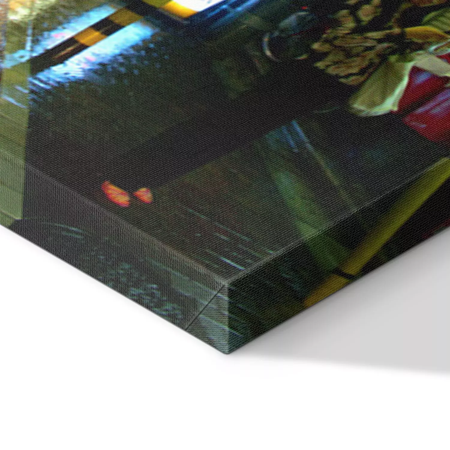 De print wordt aangebracht op hoogwaardig canvas dat op een schildersweefgetouw (spieraam) wordt gespannen. Omdat de print de zijranden bedekt, hoeft het ontwerp niet met een extra kader te worden omlijst. Wij raden ook composities aan die uit meerdere foto's bestaan en zo een coherente compositie vormen.