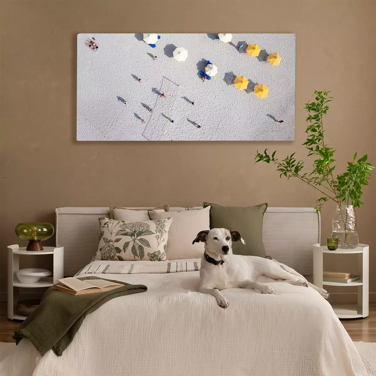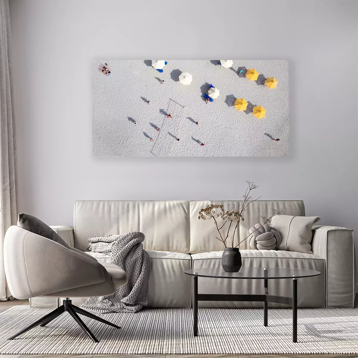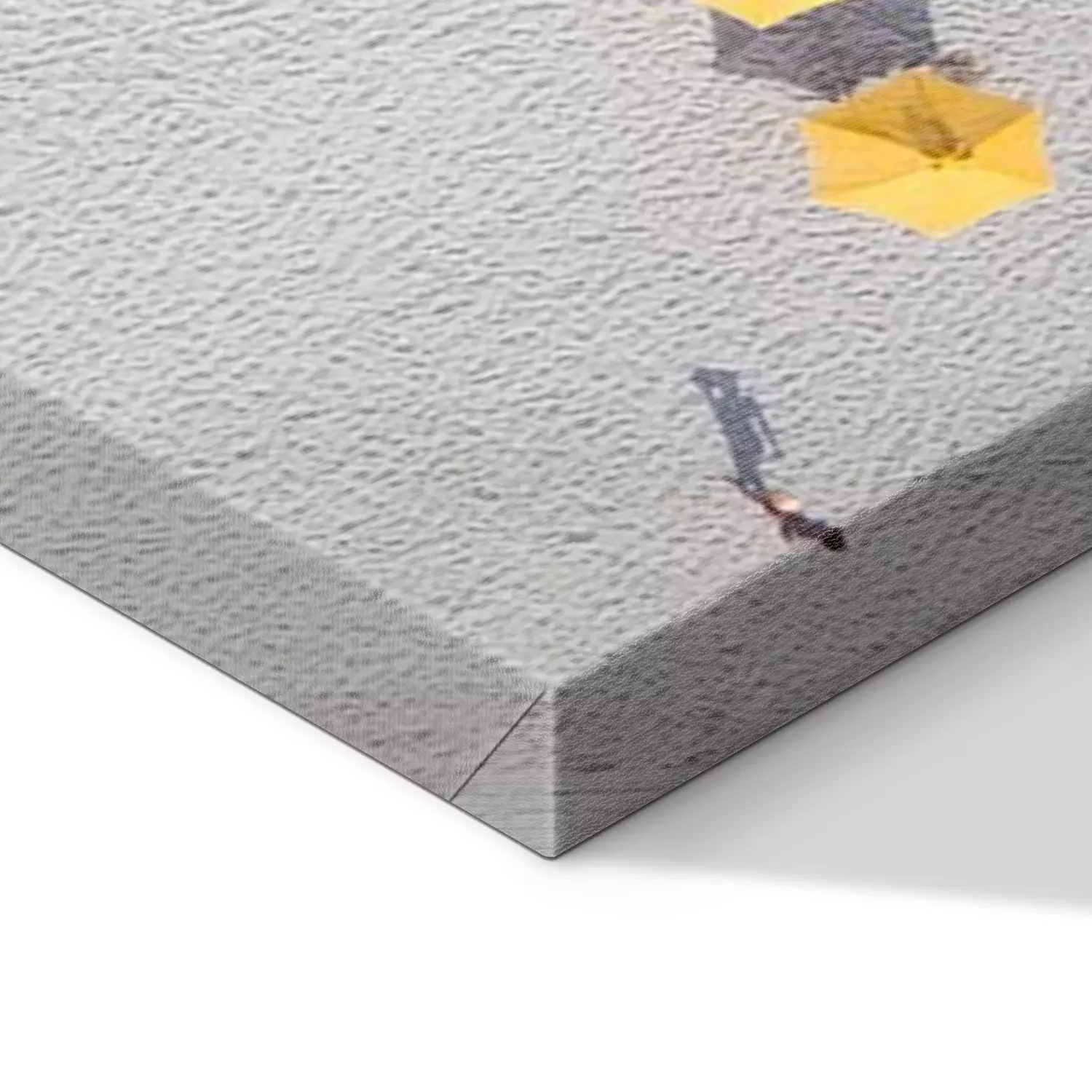 De print wordt aangebracht op hoogwaardig canvas dat op een schildersweefgetouw (spieraam) wordt gespannen. Omdat de print de zijranden bedekt, hoeft het ontwerp niet met een extra kader te worden omlijst. Wij raden ook composities aan die uit meerdere foto's bestaan en zo een coherente compositie vormen.
