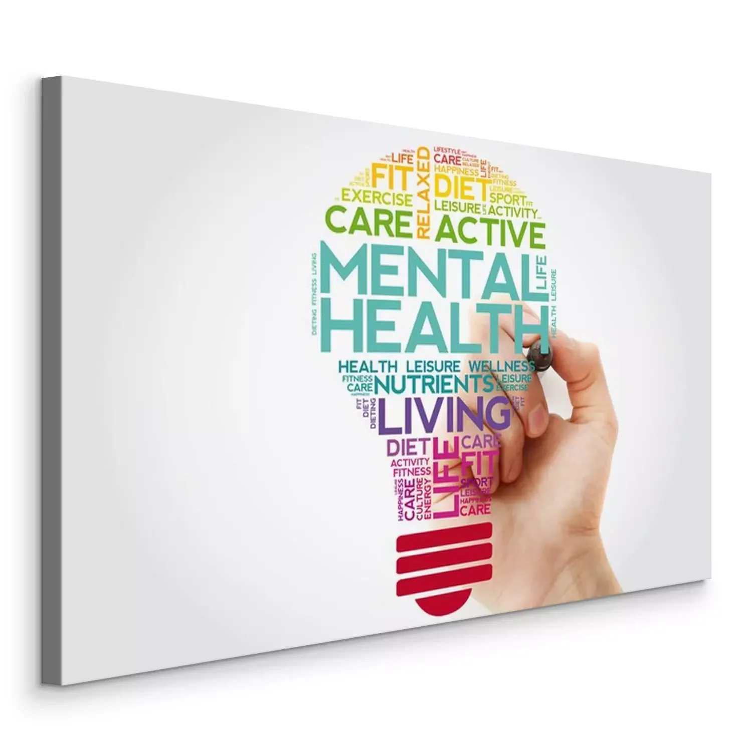 Canvas Mental health bulb word cloud collage with marker, health concept background