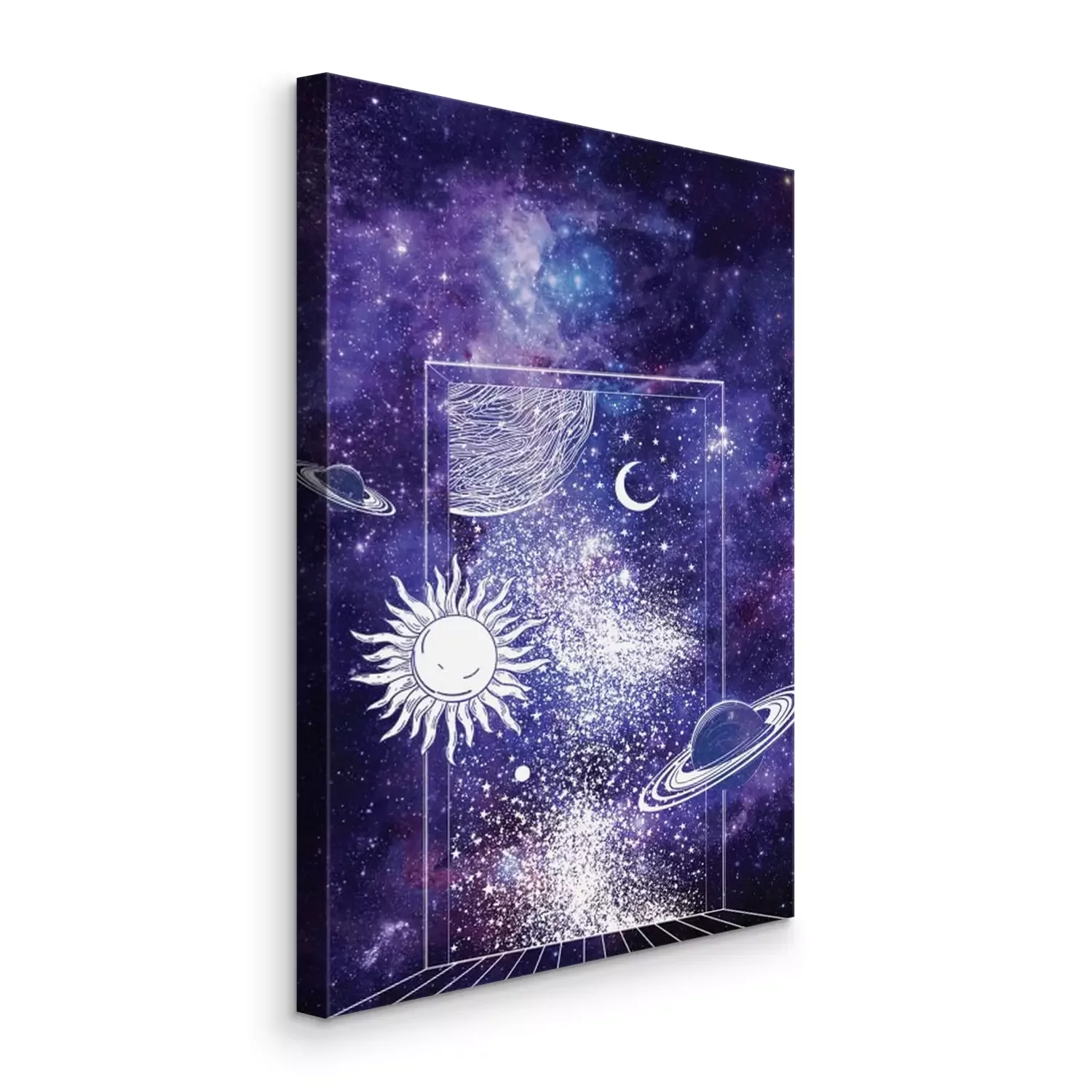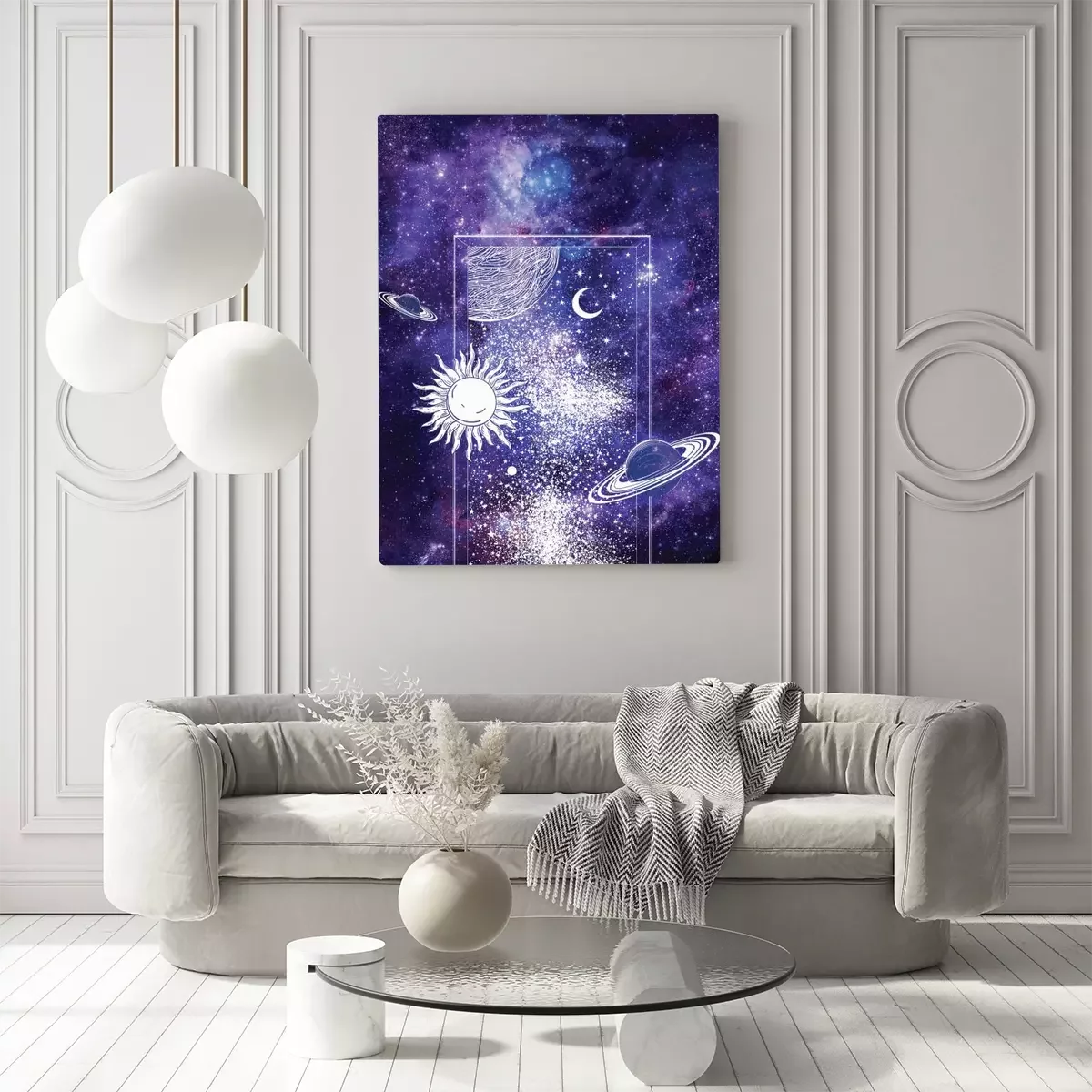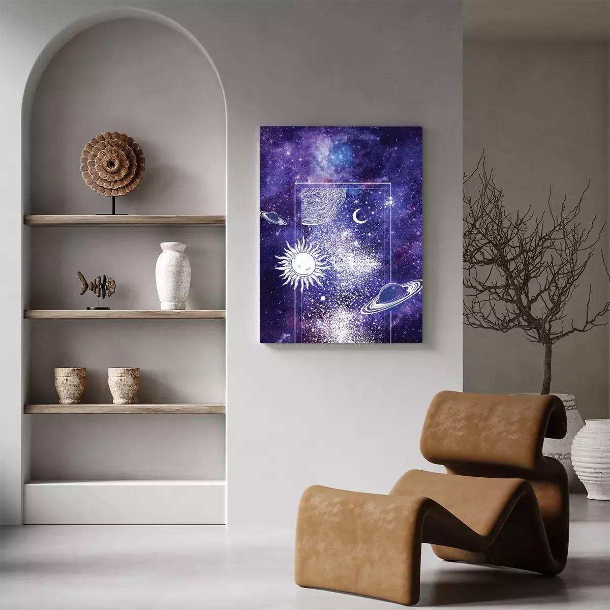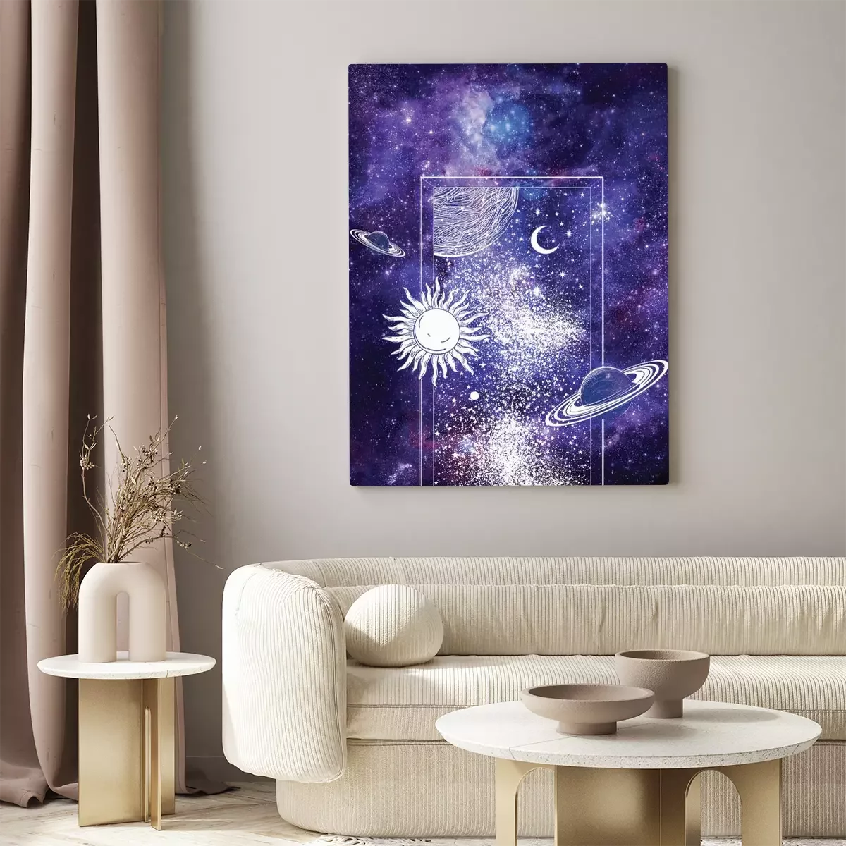 Met de hand getekend zonnestelsel met een sterrenstelsel op de achtergrond