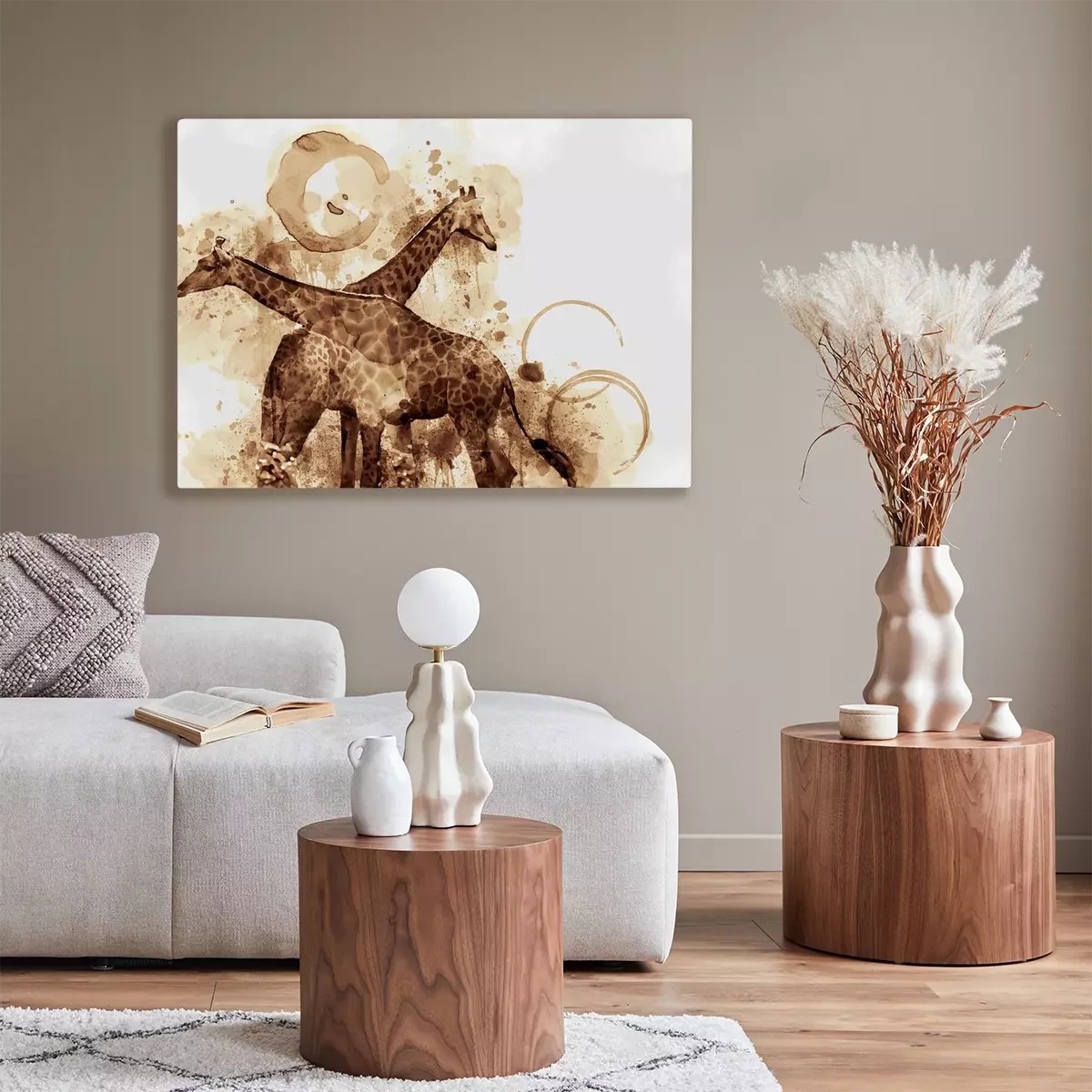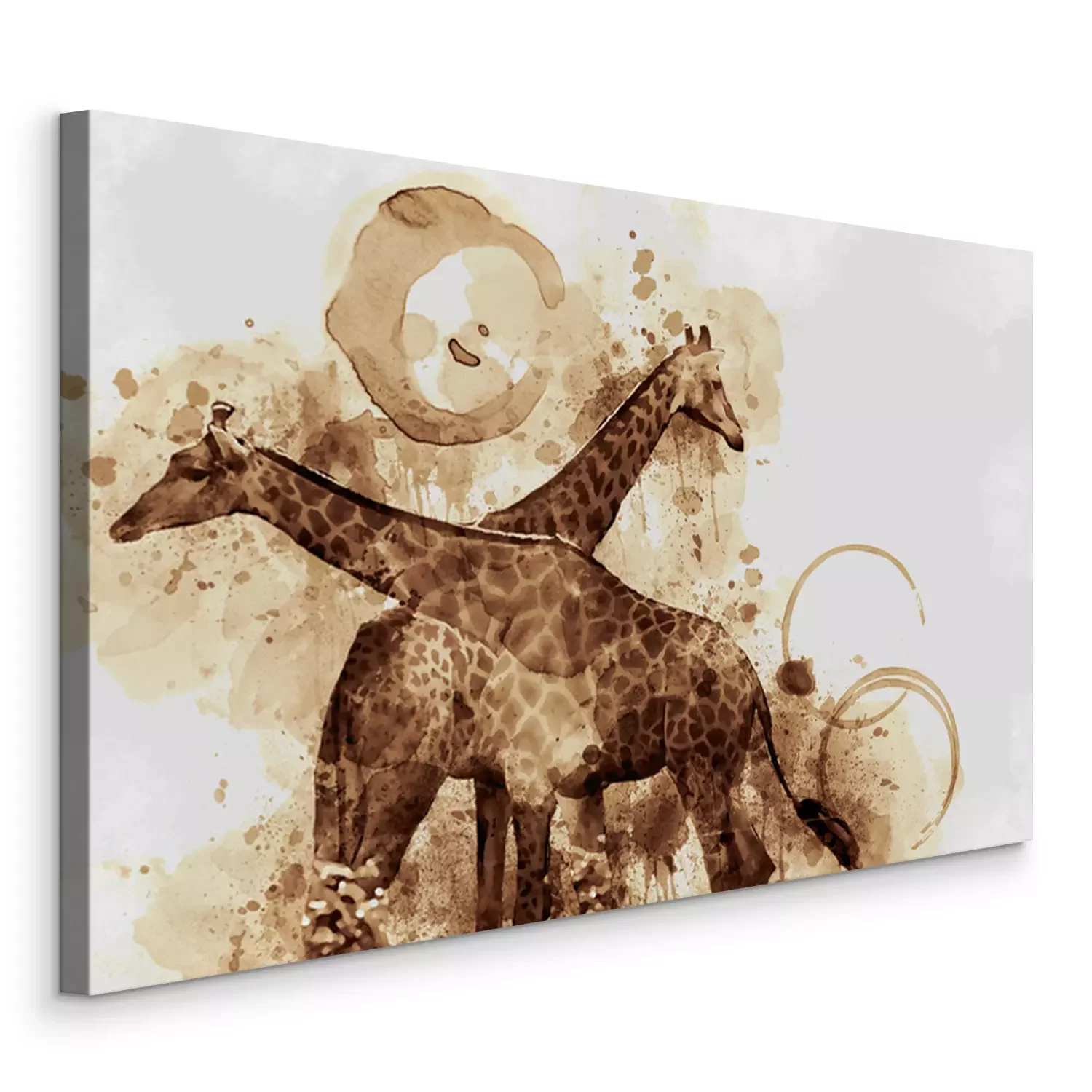 Canvas: Met koffie beschilderde giraffen