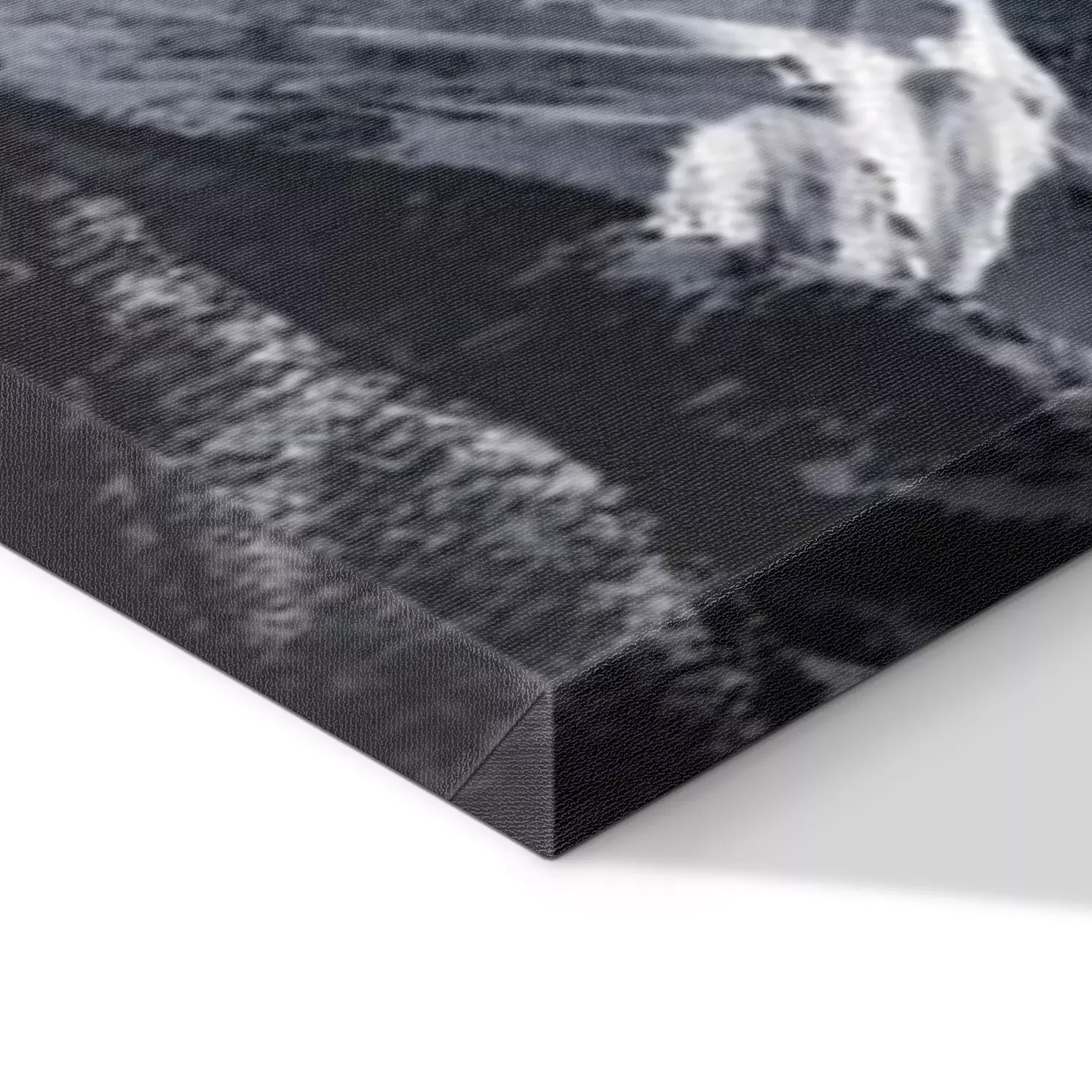 De print wordt aangebracht op hoogwaardig canvas dat op een schildersweefgetouw (spieraam) wordt gespannen. Omdat de print de zijranden bedekt, hoeft het ontwerp niet met een extra kader te worden omlijst. Wij raden ook composities aan die uit meerdere foto's bestaan en zo een coherente compositie vormen.