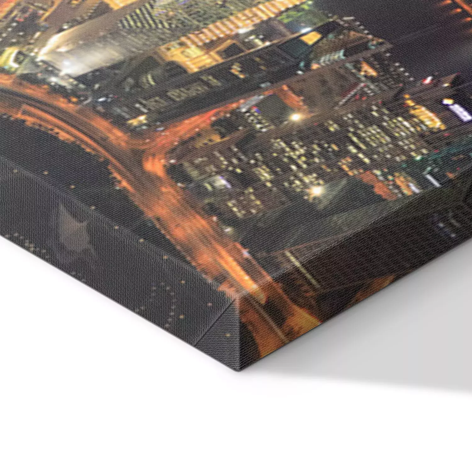 De print wordt aangebracht op hoogwaardig canvas dat op een schildersweefgetouw (spieraam) wordt gespannen. Omdat de print de zijranden bedekt, hoeft het ontwerp niet met een extra kader te worden omlijst. Wij raden ook composities aan die uit meerdere foto's bestaan en zo een coherente compositie vormen.