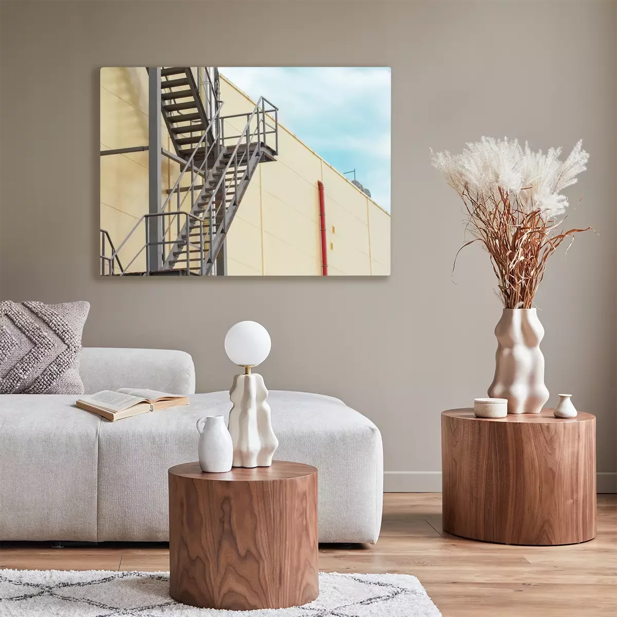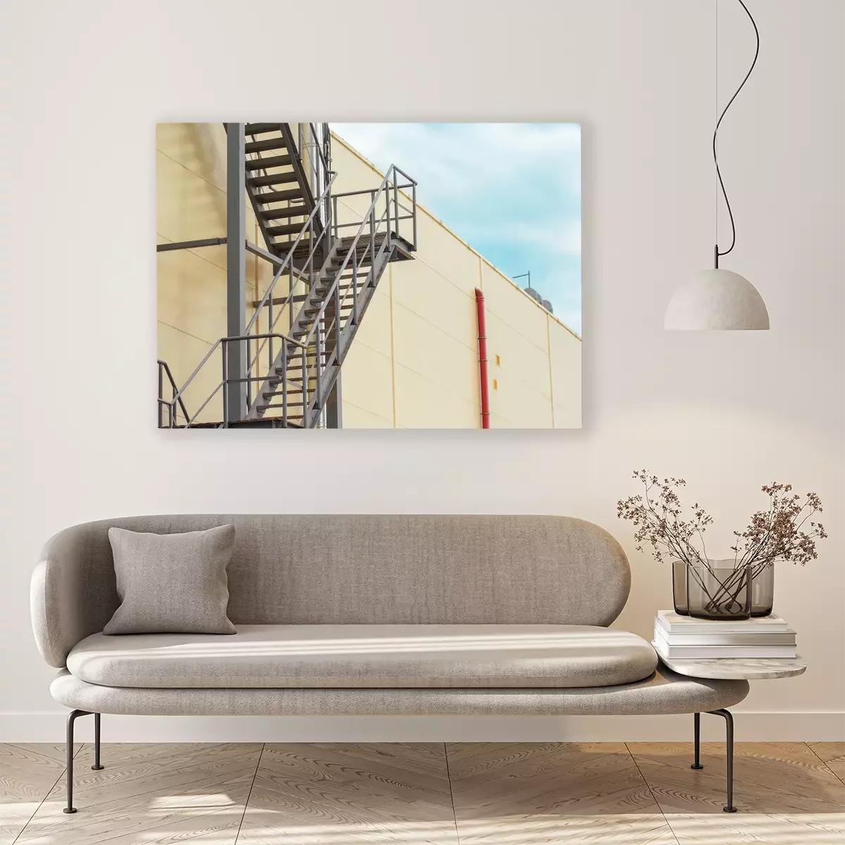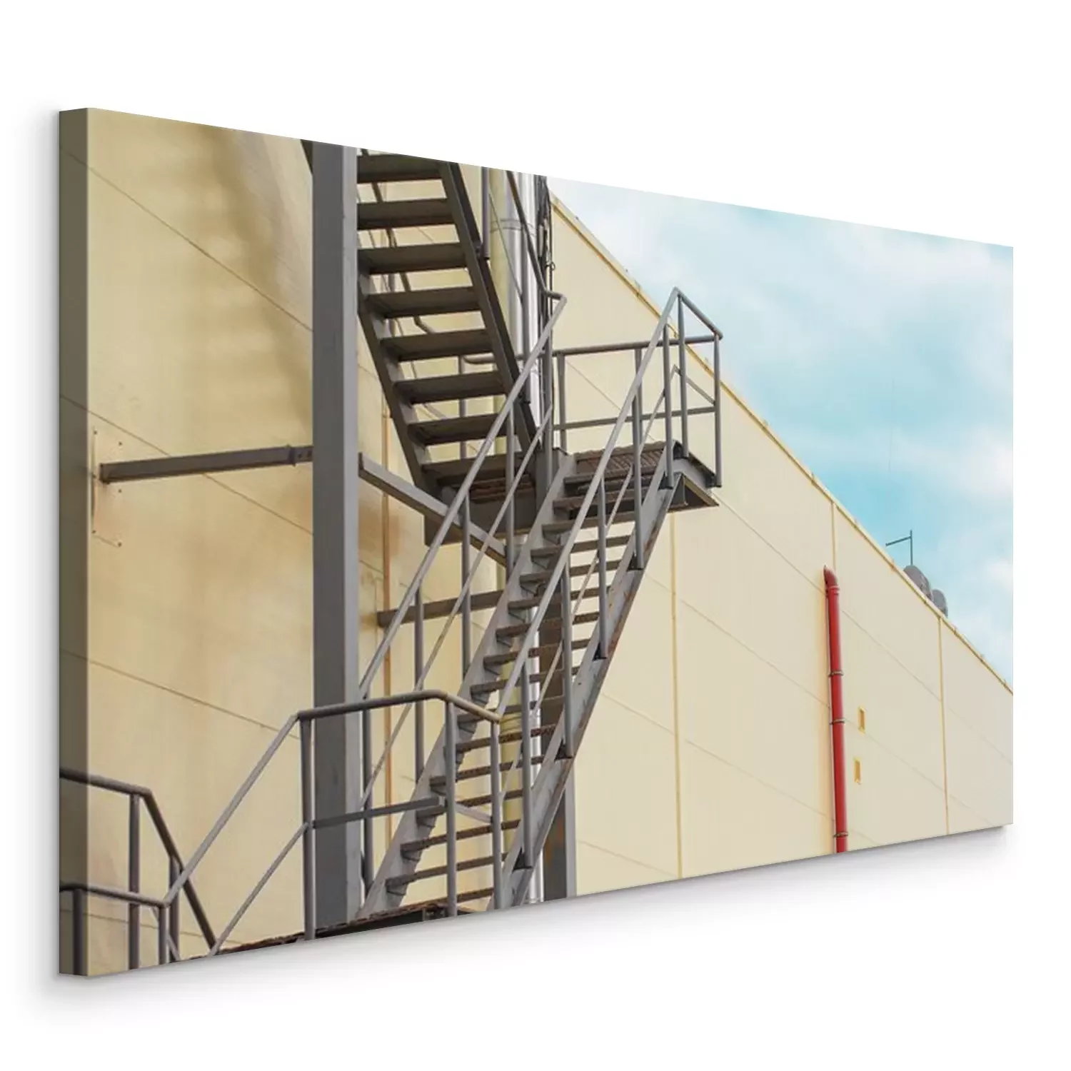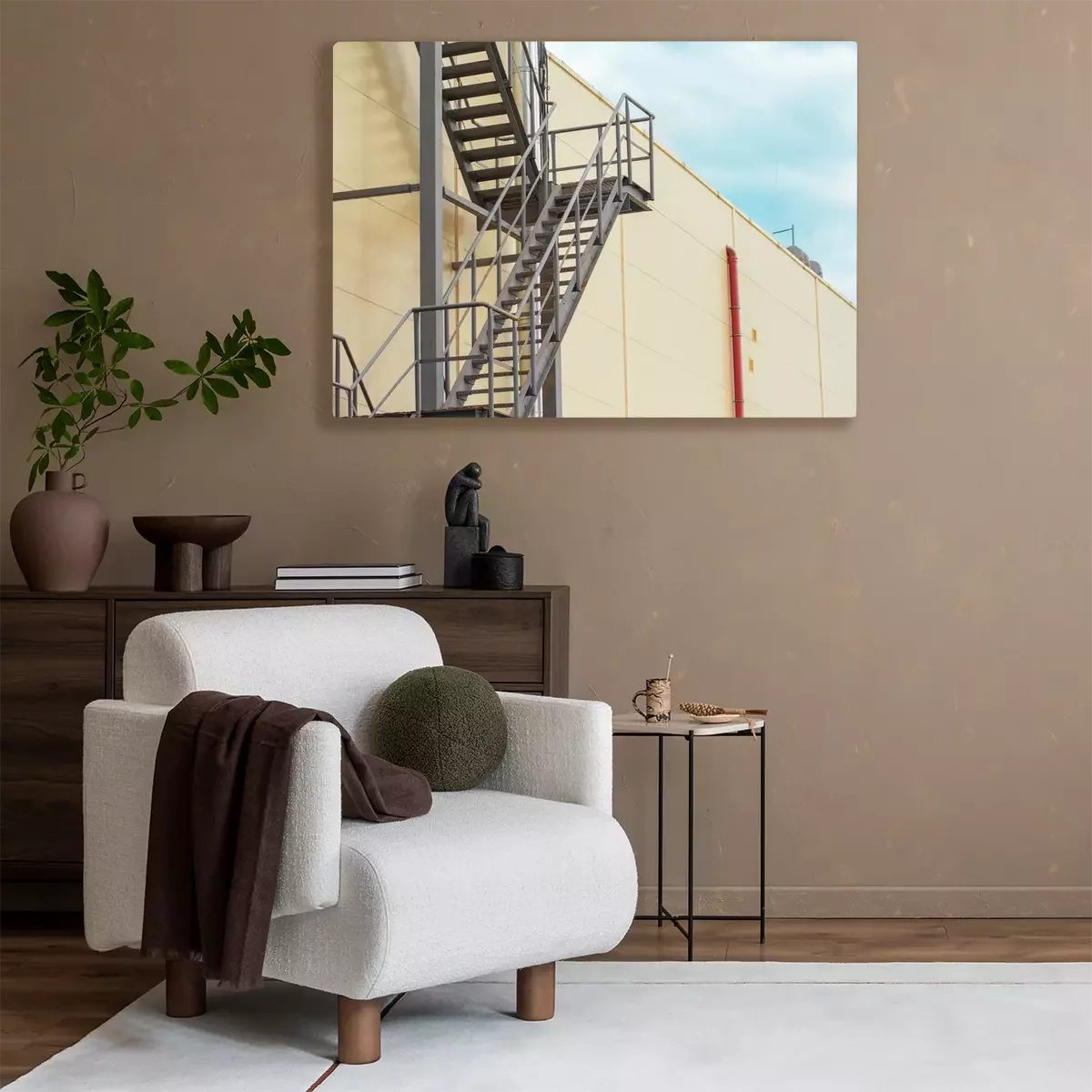 Canvas: Metalen trap tegen de blauwe lucht met wolken