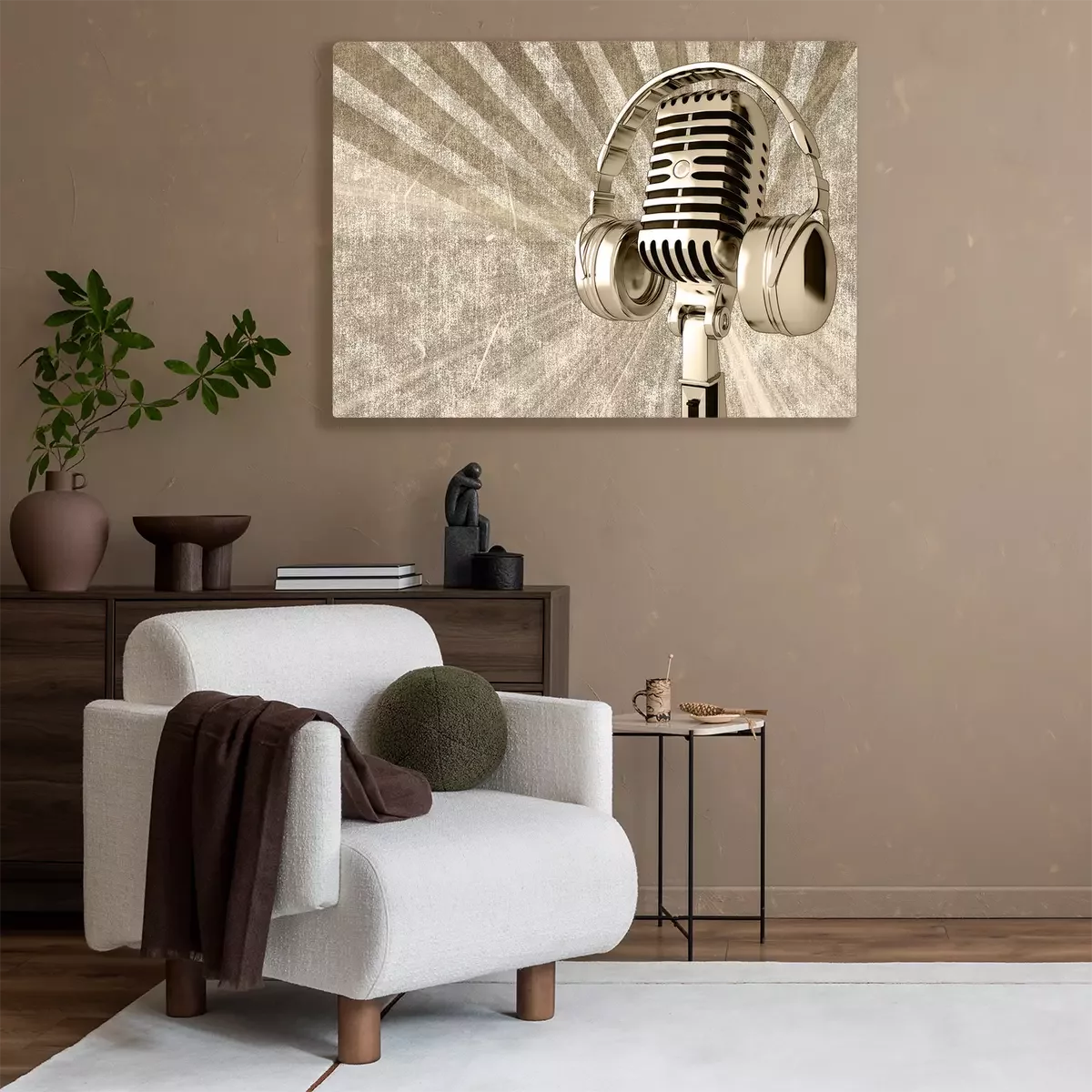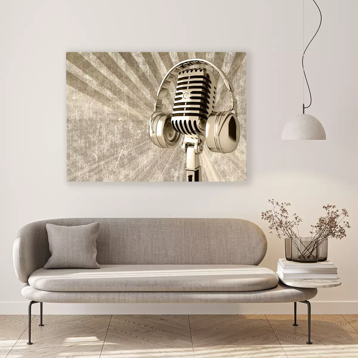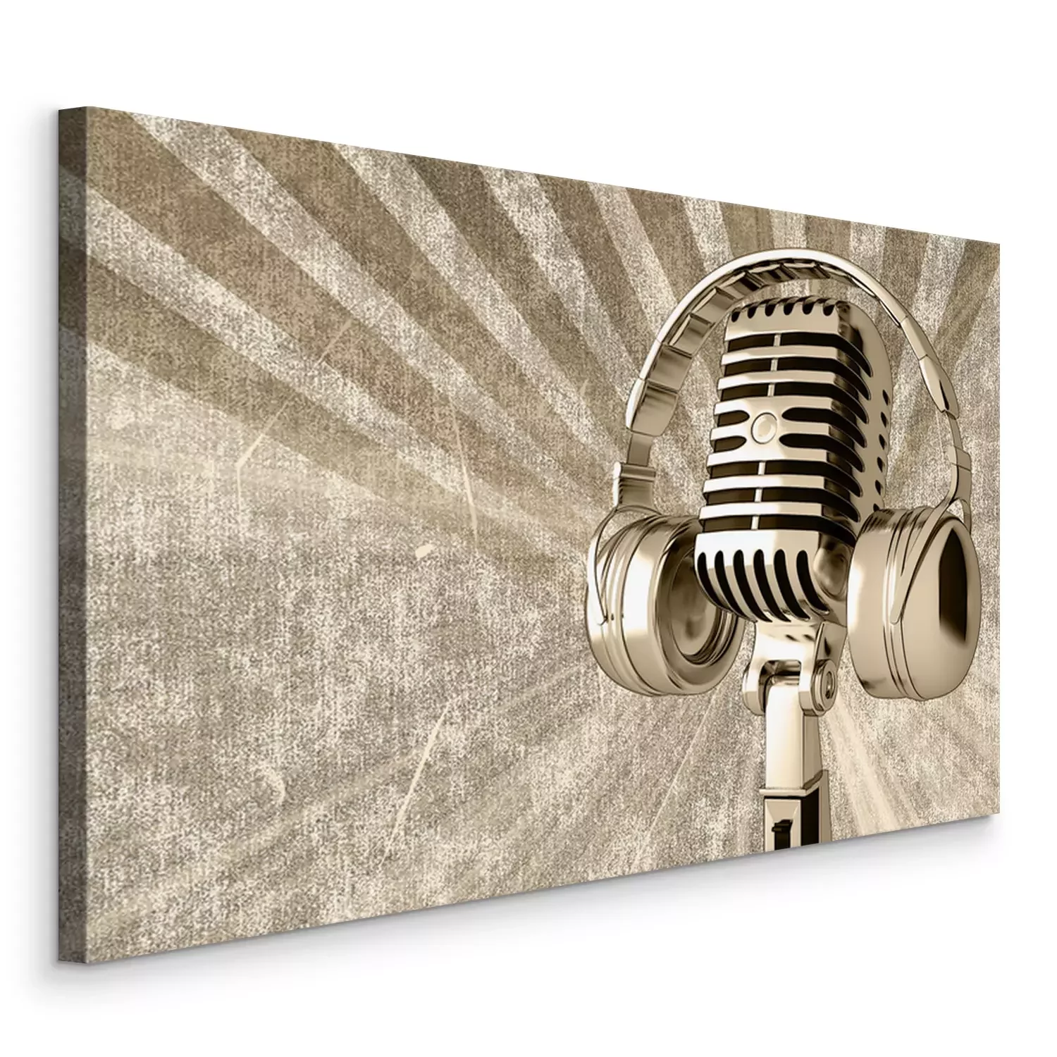Canvas: Microfoon met koptelefoon op de oude achtergrond