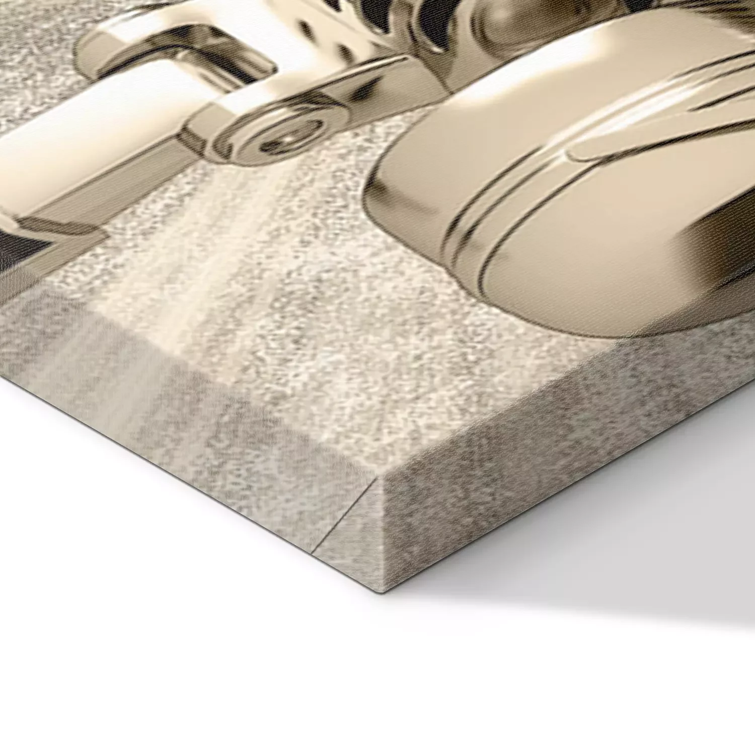 De print wordt aangebracht op hoogwaardig canvas dat op een schildersweefgetouw (spieraam) wordt gespannen. Omdat de print de zijranden bedekt, hoeft het ontwerp niet met een extra kader te worden omlijst. Wij raden ook composities aan die uit meerdere foto's bestaan en zo een coherente compositie vormen.
