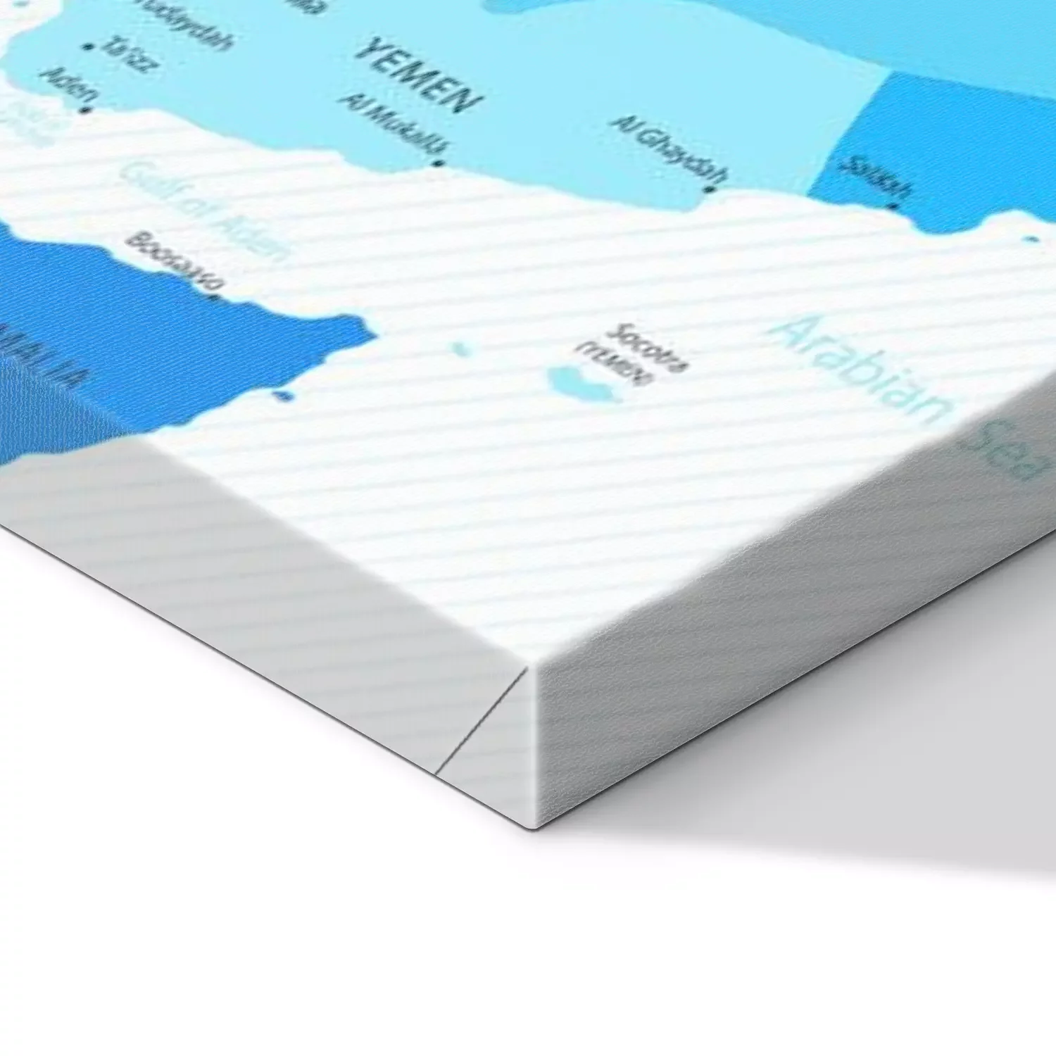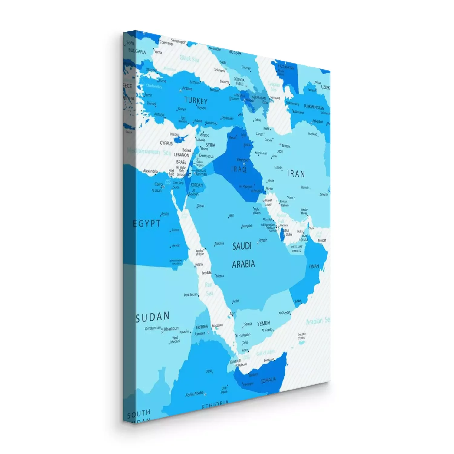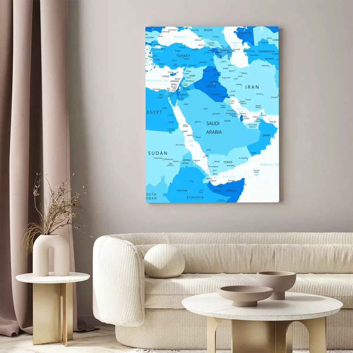 Canvas Midden-Oosten en Azië Kaart Blauwe Kleuren Map