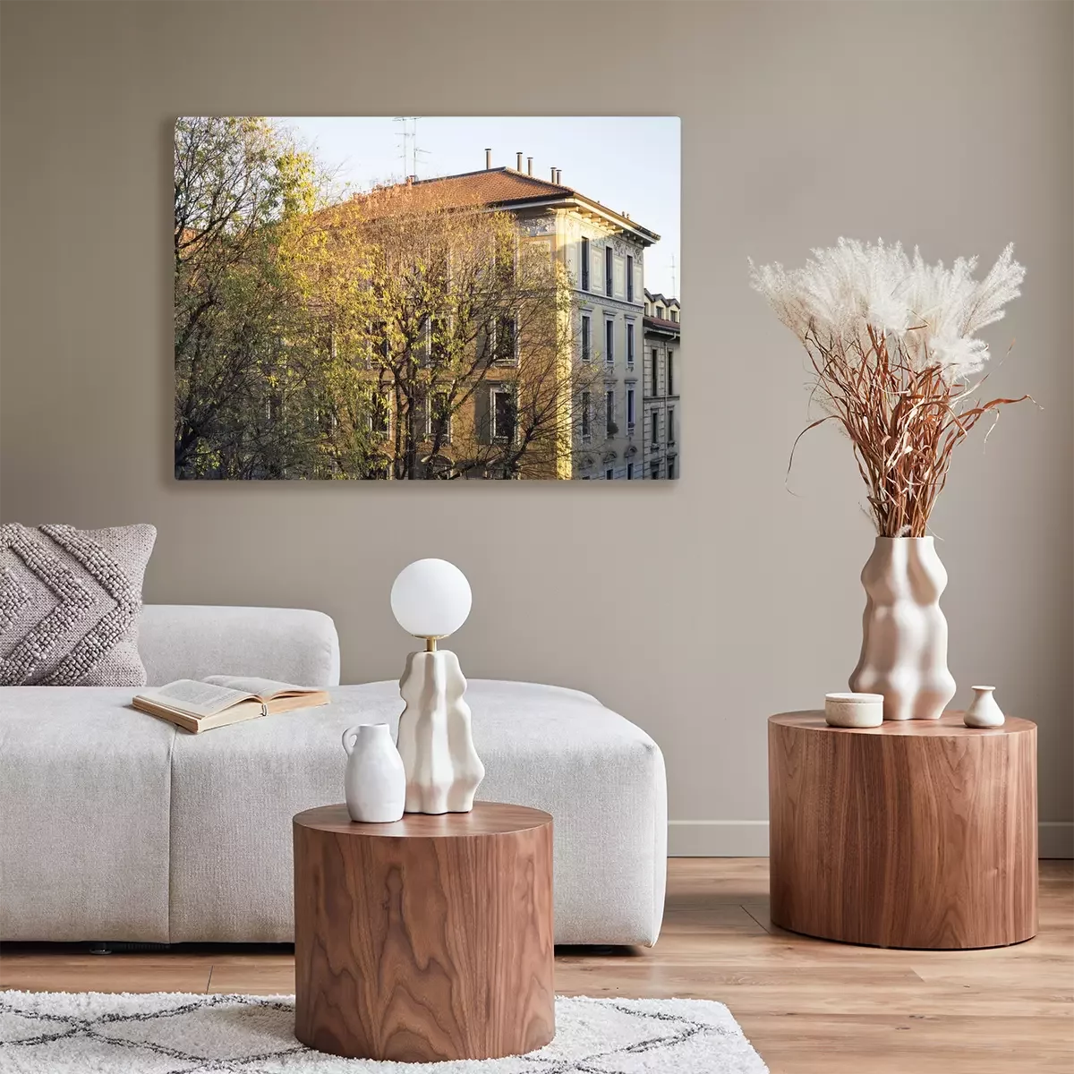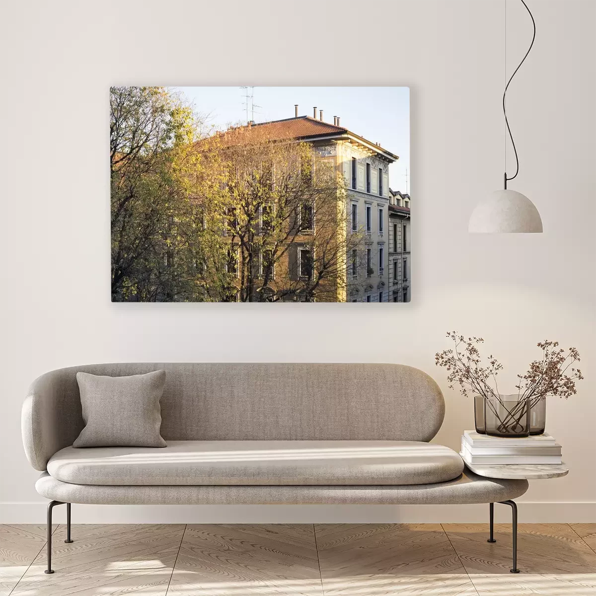 De print wordt aangebracht op hoogwaardig canvas dat op een schildersweefgetouw (spieraam) wordt gespannen. Omdat de print de zijranden bedekt, hoeft het ontwerp niet met een extra kader te worden omlijst. Wij raden ook composities aan die uit meerdere foto's bestaan en zo een coherente compositie vormen.