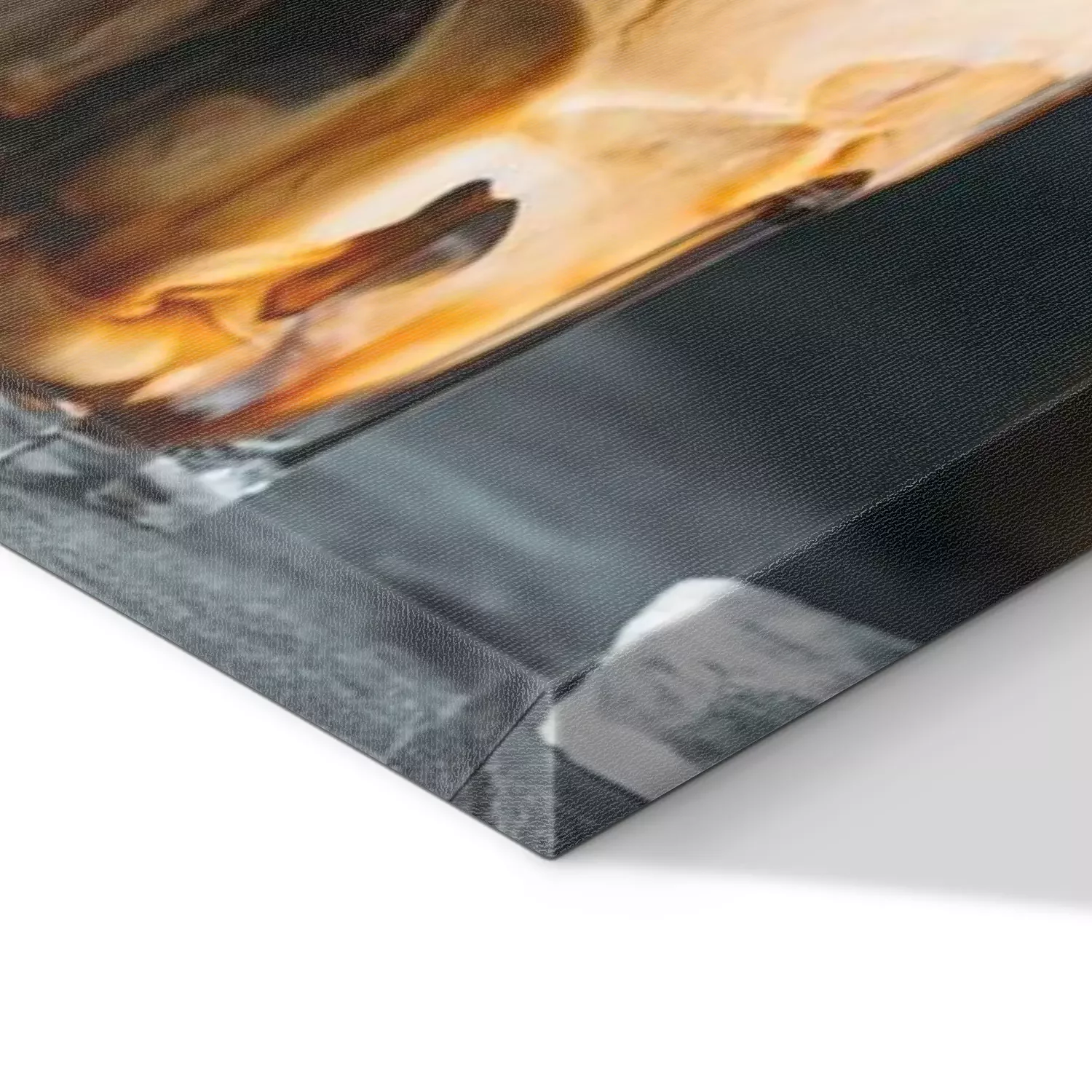 De print wordt aangebracht op hoogwaardig canvas dat op een schildersweefgetouw (spieraam) wordt gespannen. Omdat de print de zijranden bedekt, hoeft het ontwerp niet met een extra kader te worden omlijst. Wij raden ook composities aan die uit meerdere foto's bestaan en zo een coherente compositie vormen.