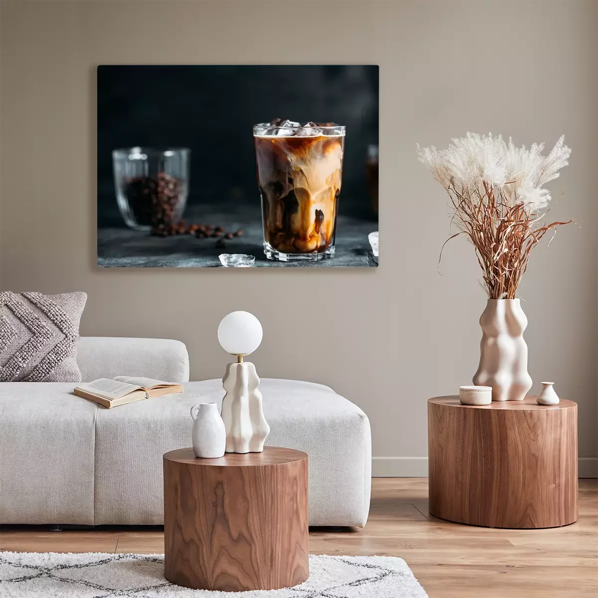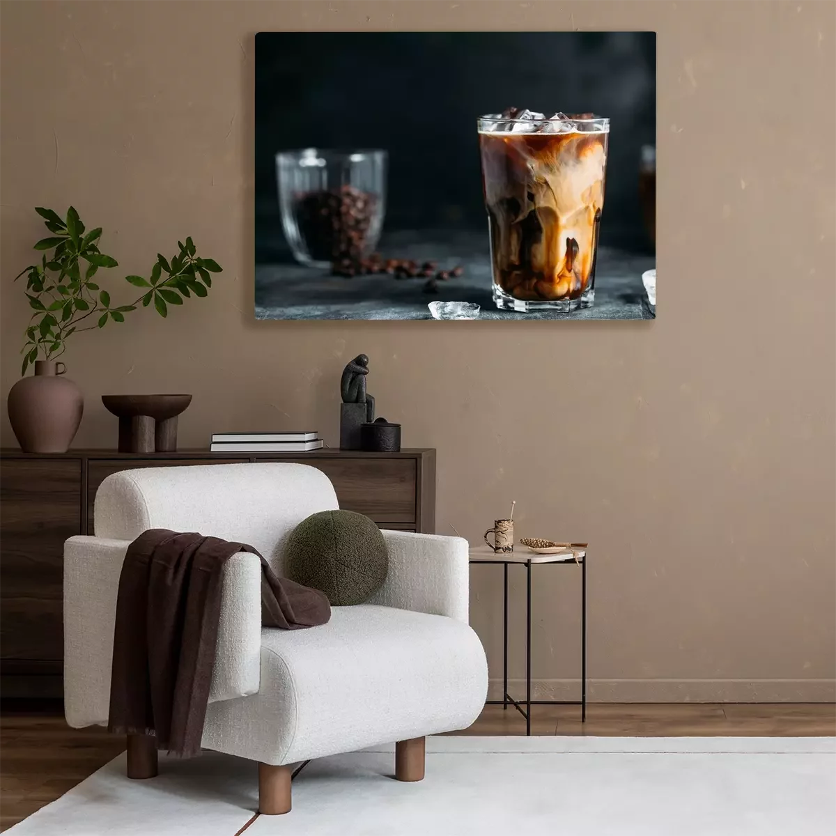 Canvas Milk Being Poured Into Iced Coffee on a dark table