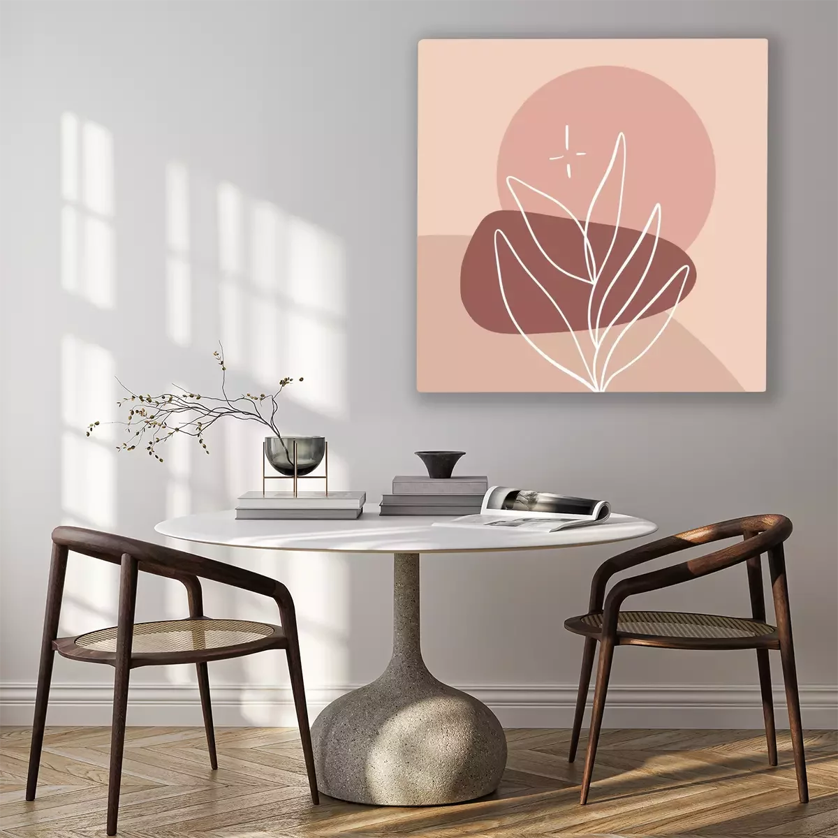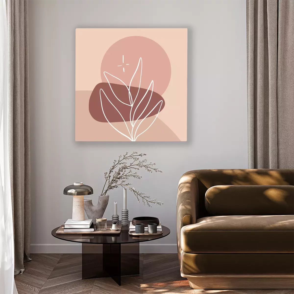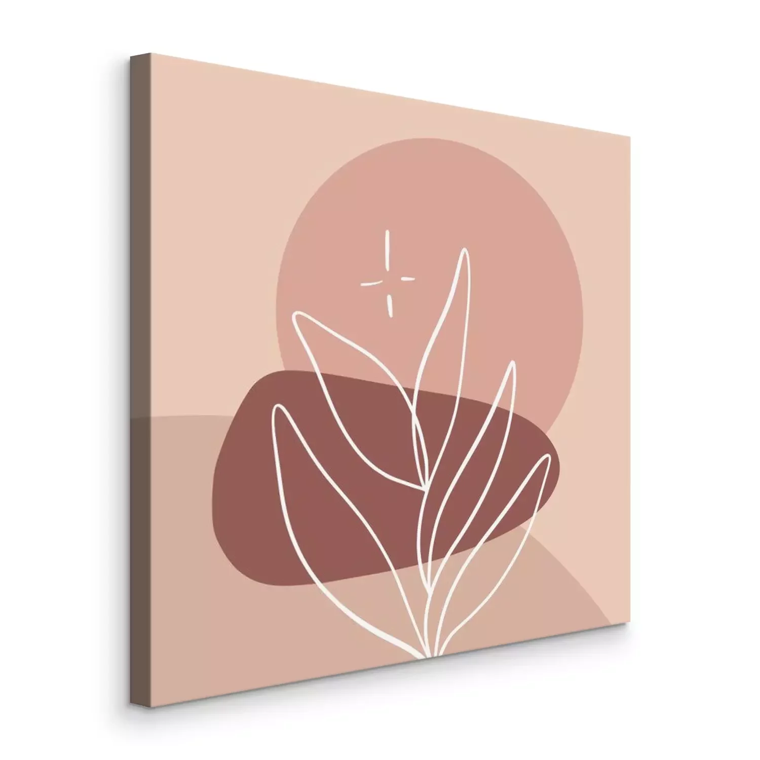 Canvas Minimalist abstraction with leaf and geometric shapes. Contemporary scandinavian style. Flat design collage terracotta color composition. Good for posters, postcards, social media banners