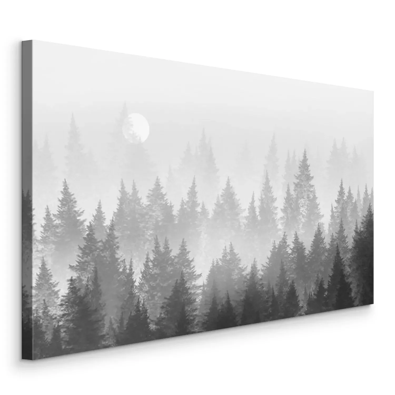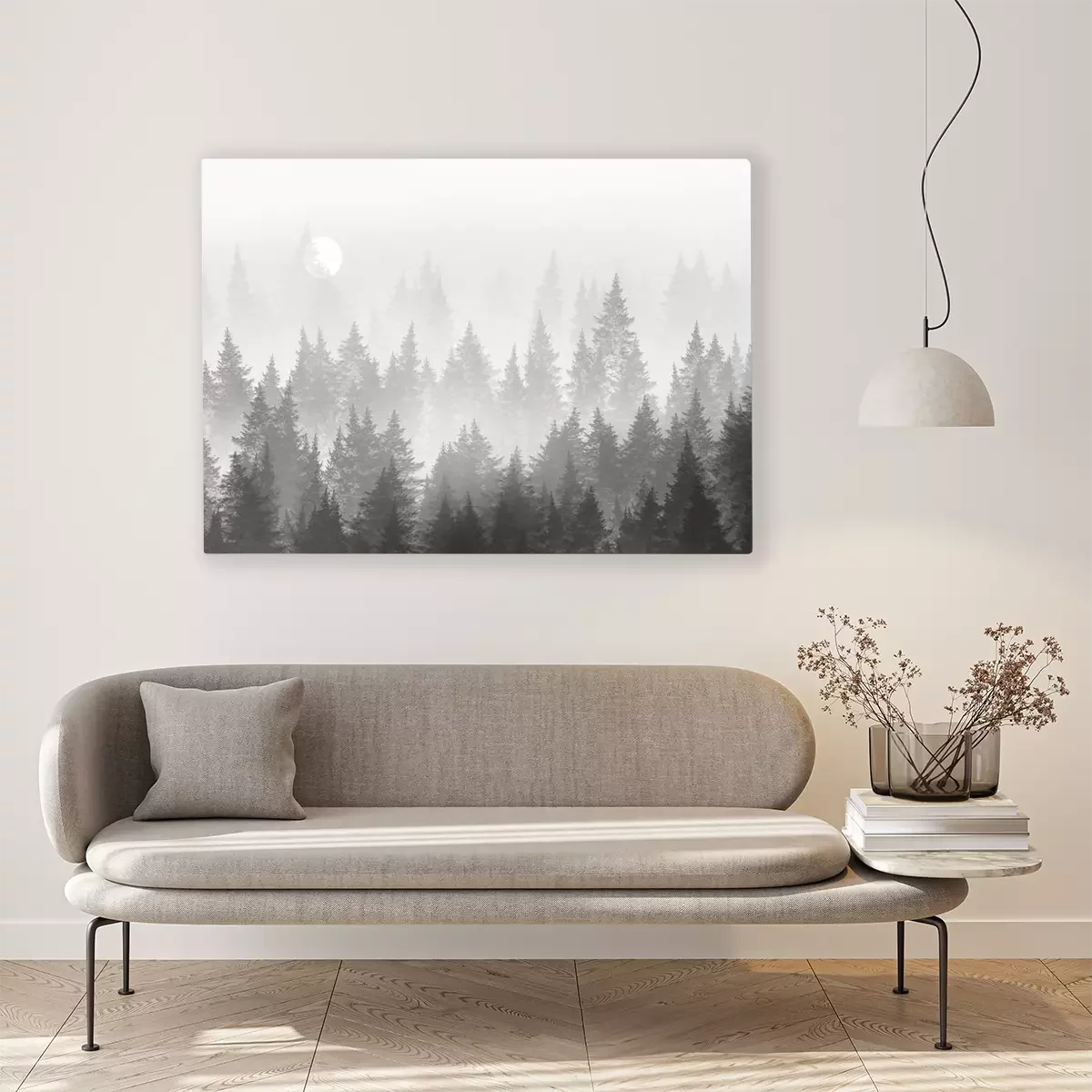 Canvas Minimalistisch bos in mist. Digitaal schilderij.